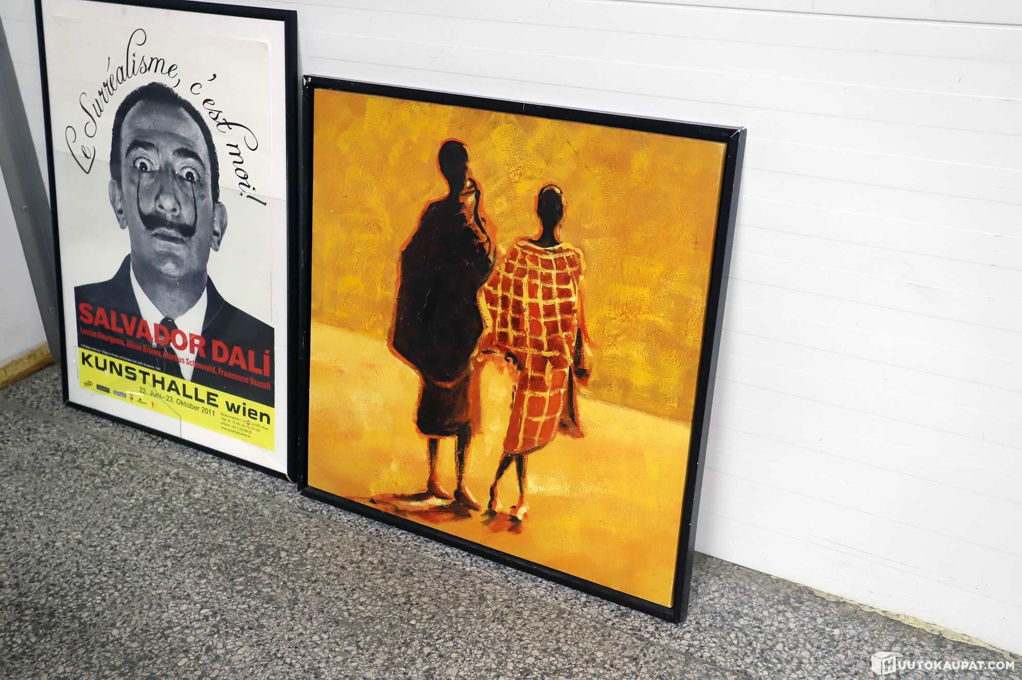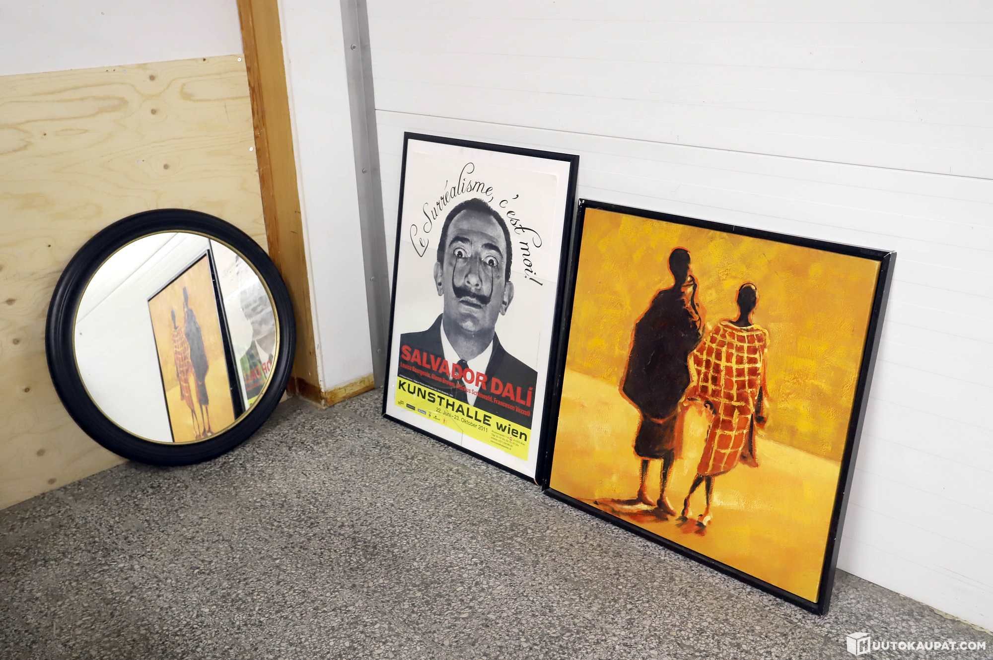 Salvador Dali-juliste, öljyvärimaalaus sekä Ikean peili.