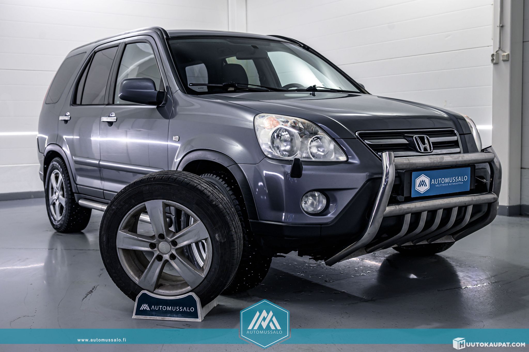 Mussalon huutokaupattavien valikoimaan kurvasi metsästäjän unelma. Nimittäin ihka aito harmaalla ulkovärillä varustettu Honda CR-V 2.2 diesel 4WD. Auto on maantietä jo nähnyt, mutta ryhdikäs ja valmiina vielä uusiin seikkailuihin. Pellin alla raksuttaa 2.2 turbodieseli ja voimansiirrosta nelivedolle huolehtii manuaalivaihteet.