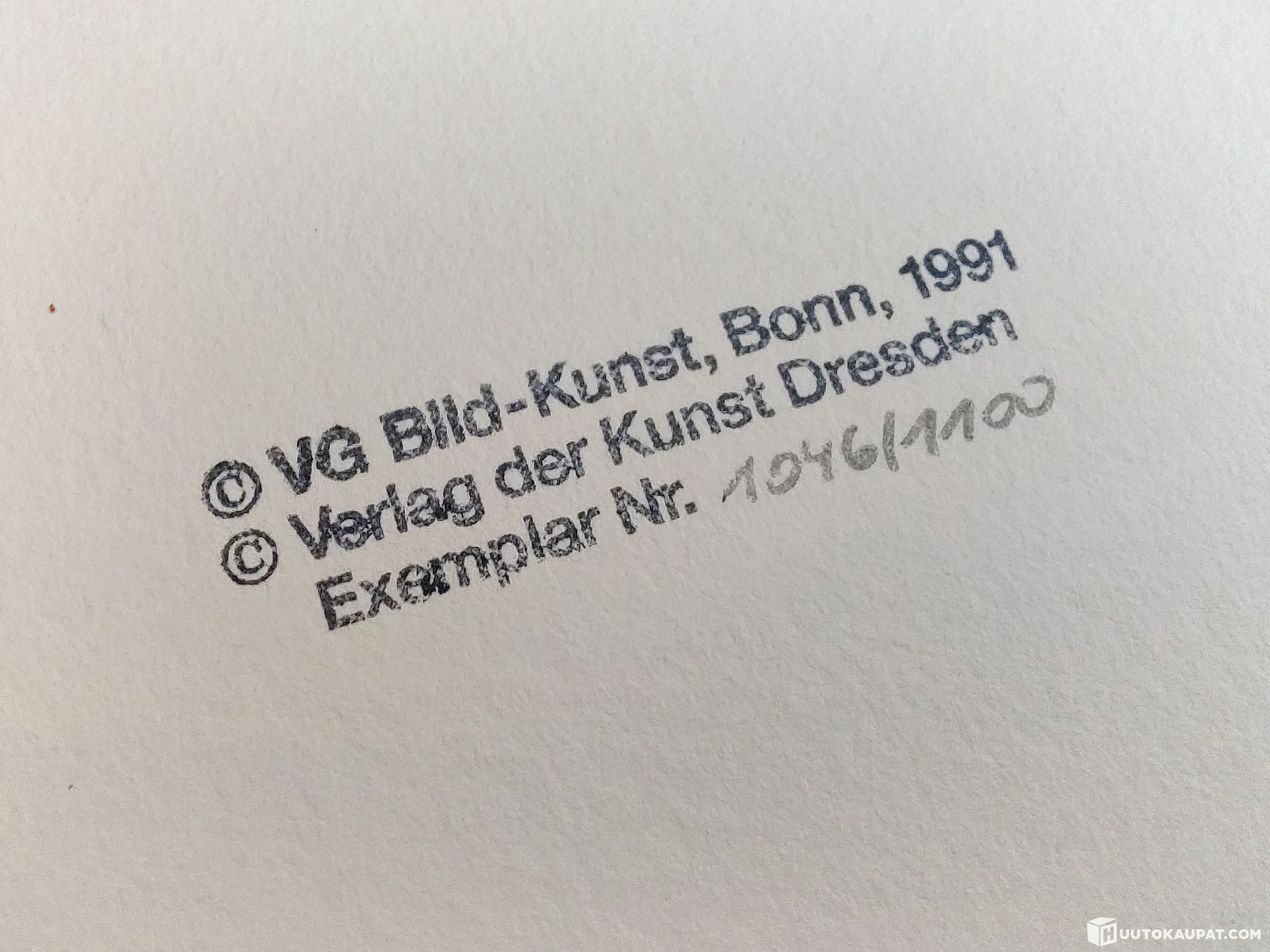 Rajoitettu, numeroitu painos 1046/1100, gallerian leimat