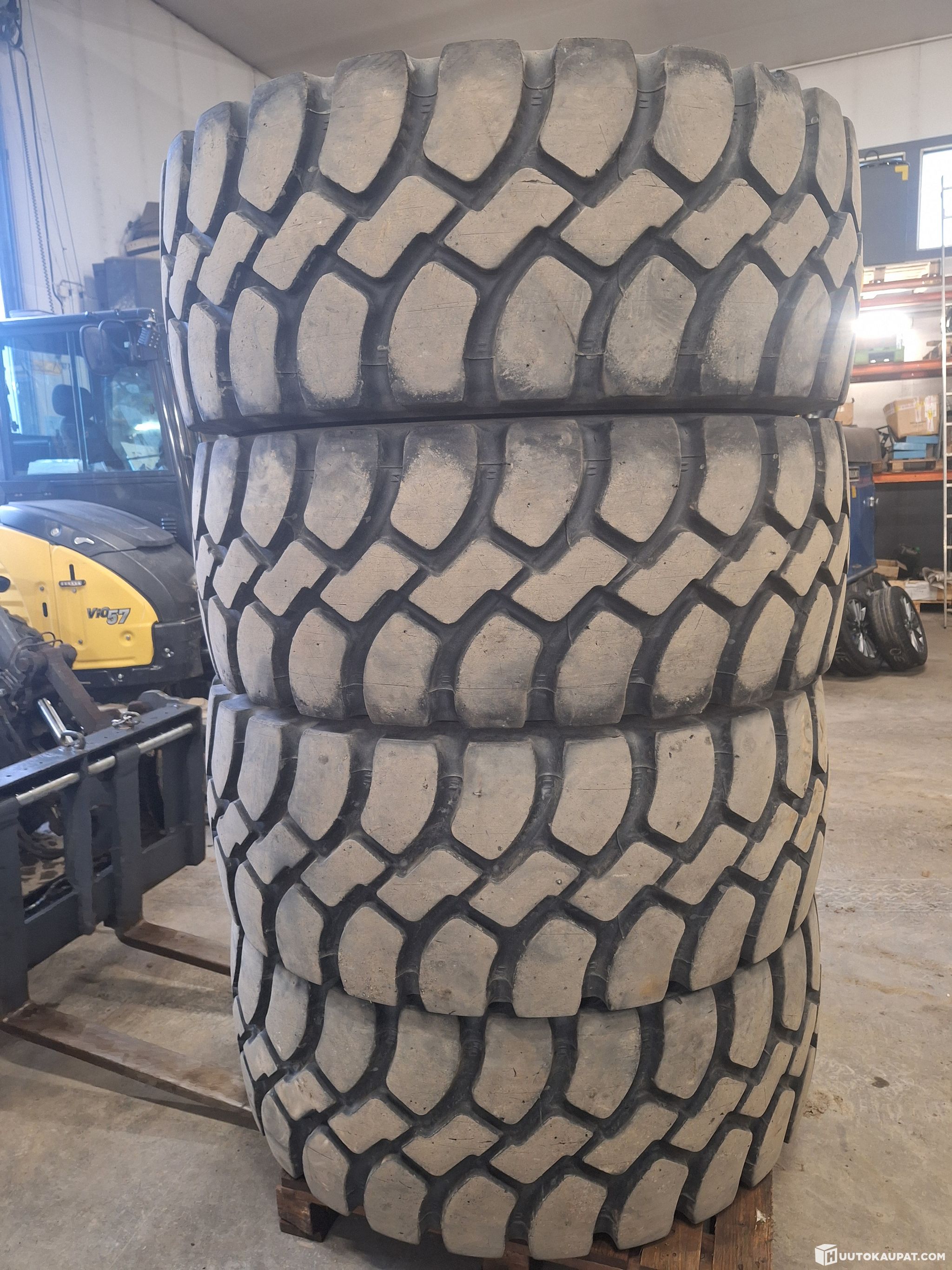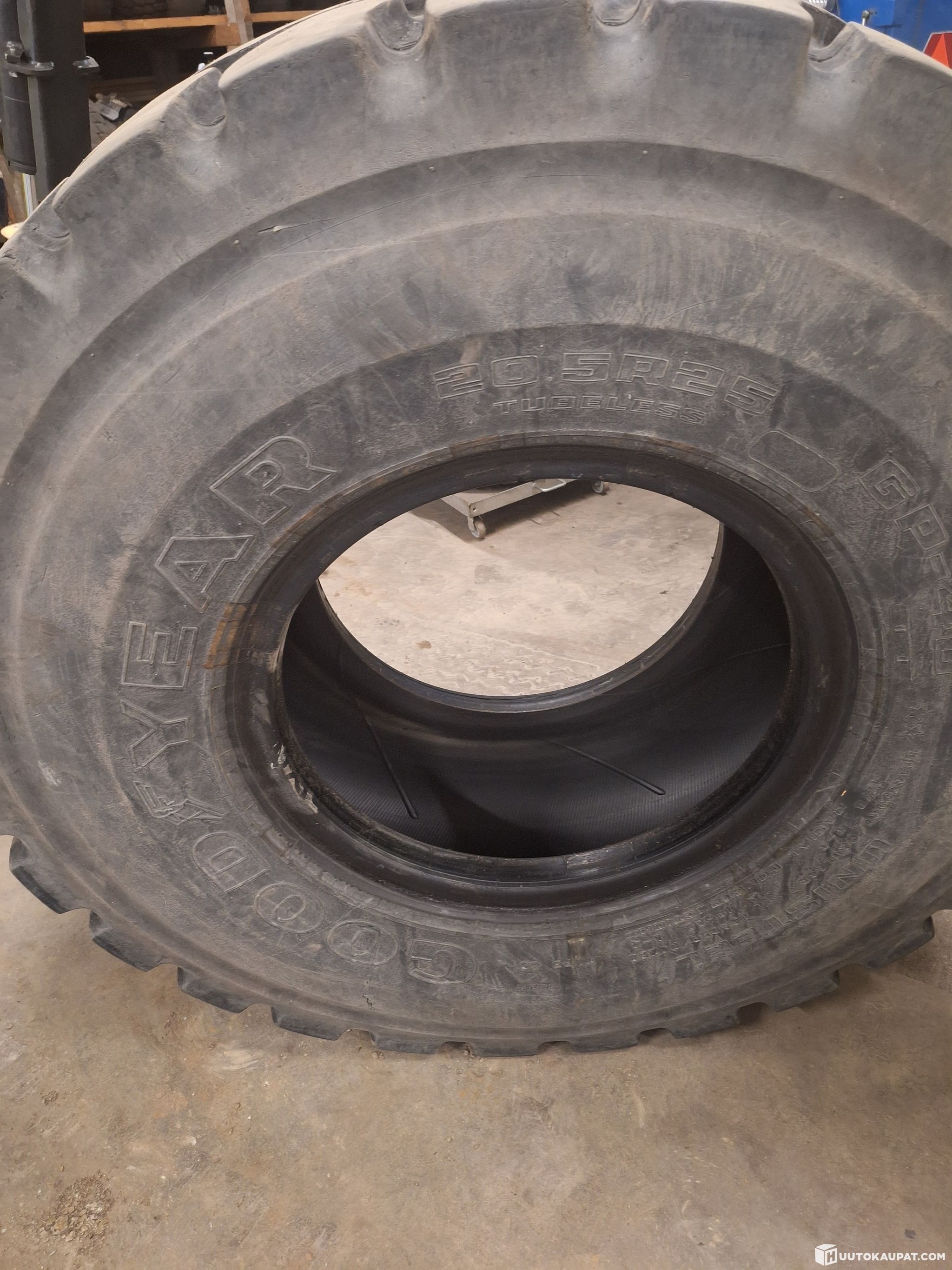 Kuvien mukaiset käytetyt pyöräkuormaajan renkaat Good Year20.5R25 GB-40. Pintaa vielä ihan hyvin jäljellä. Rungoissa näkyy joitakin pieniä viiltoja. Kuvissa kuvattu joka renkaan kyljet niin saa itse arvioida kunnon.