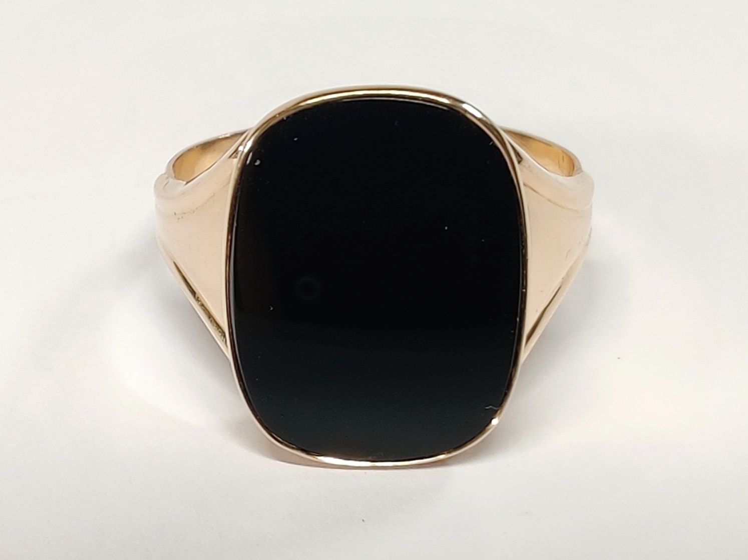 Kultainen onyxkantasormus (Turun Kultapaja, v. 1982) 585 14k, Mikkeli