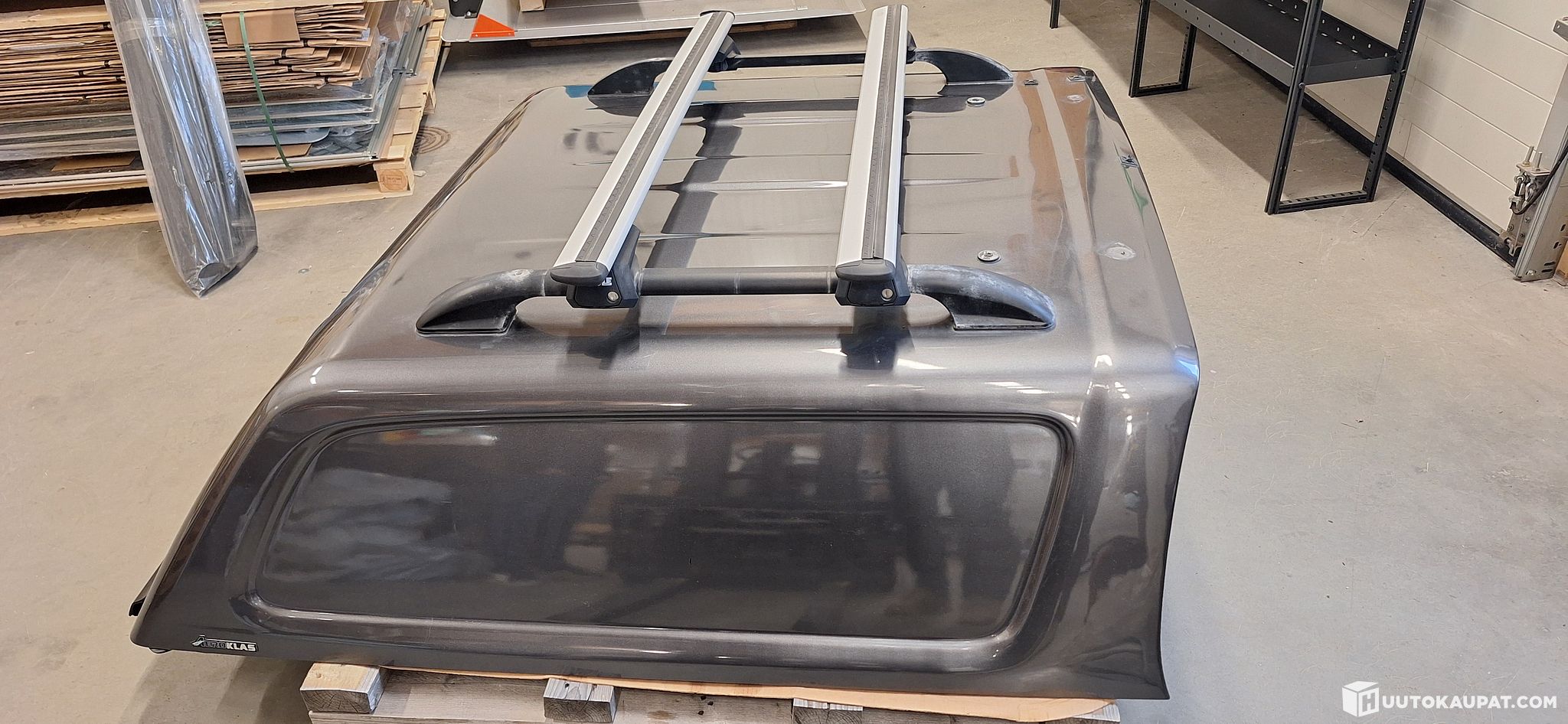 Muutaman vuoden käytössä ollut Toyota Hilux DoubleCabin Aeroklas Commercial -lavakate. Väriltään tumman harmaa, maalin värikoodi 1G3.