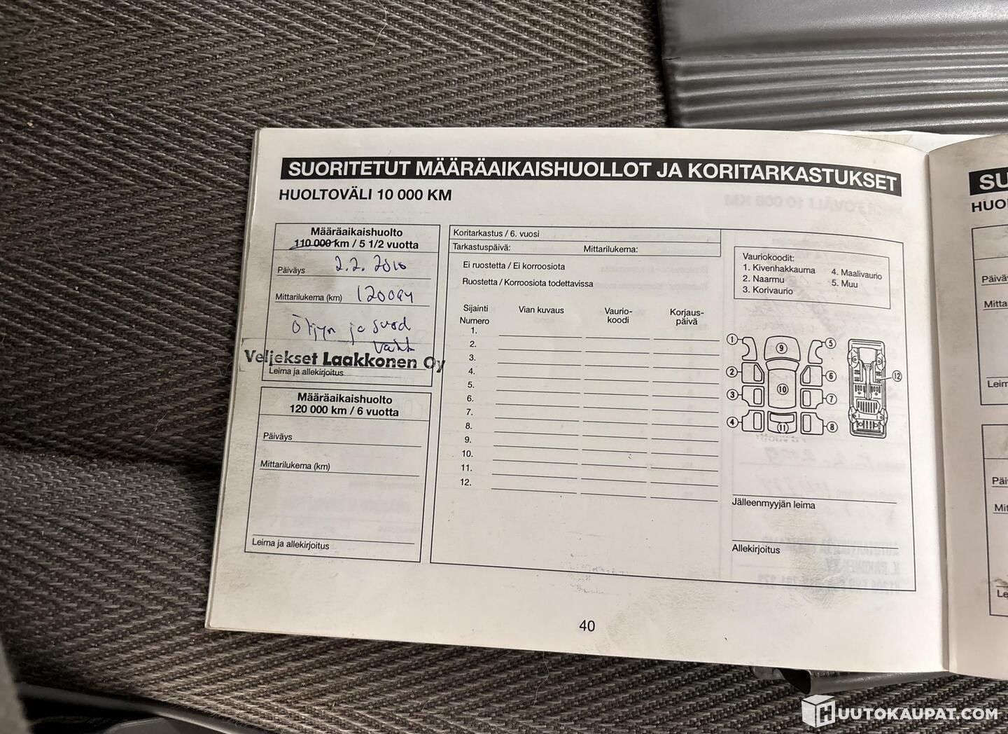 Huoltohistoria (tositteet tehdyistä huolloista)