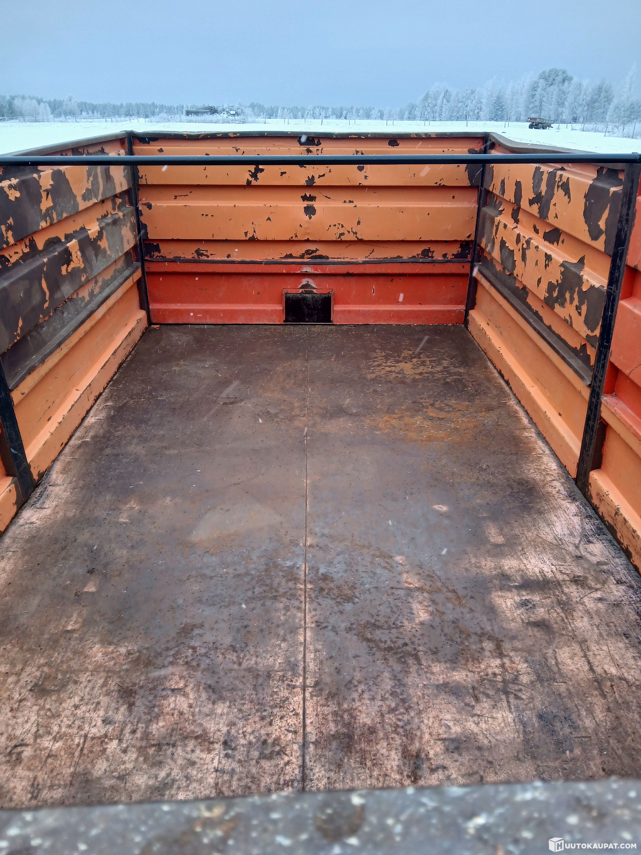 Ruostetta ja lommoja piisaa. Vanha kärry takuuta ei ole edes perävaloille.