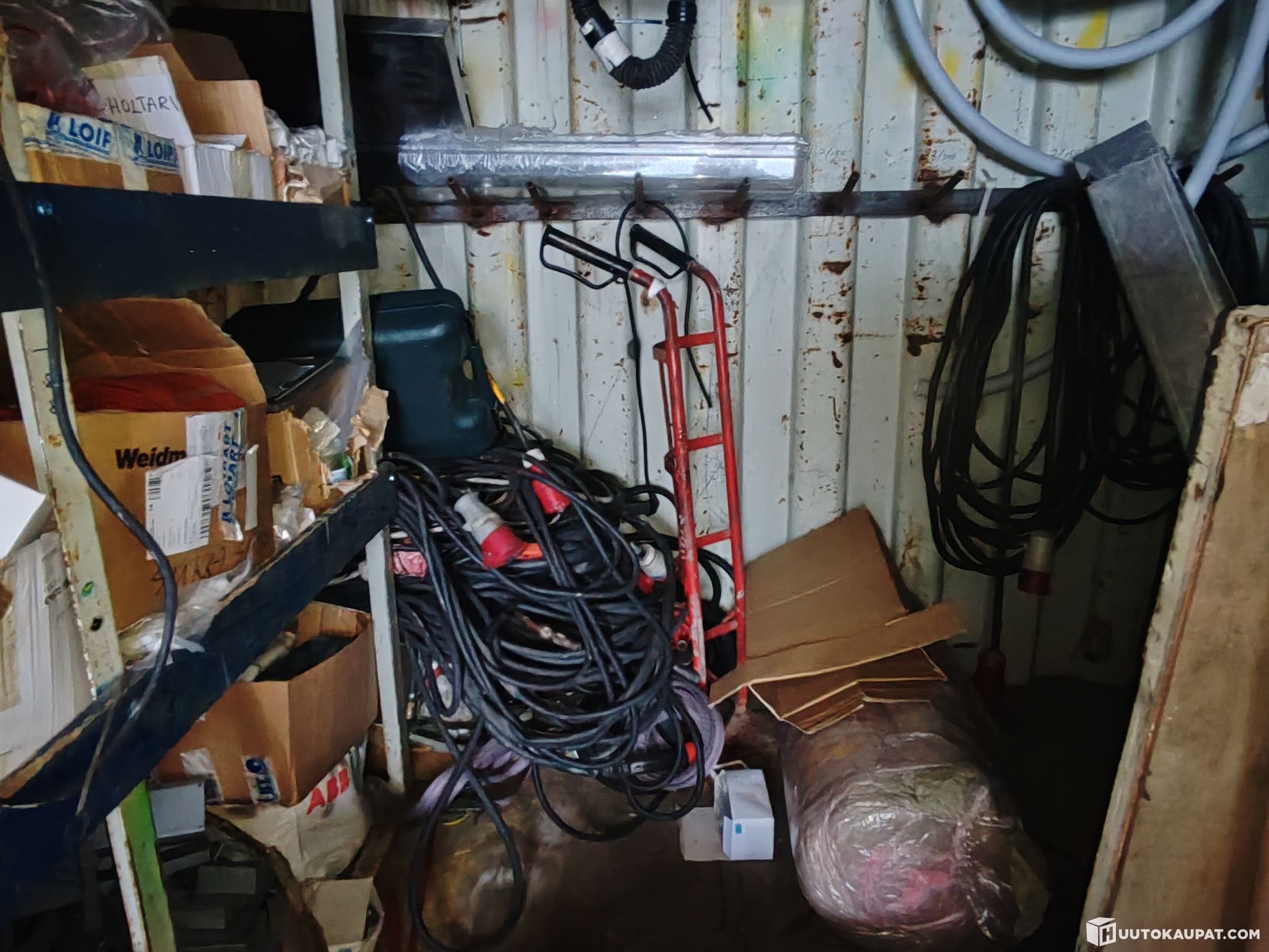 Huutokaupataan eniten tarjovalle kuvissa näkyvä n.6m pitkä merikontti sekä kaikki sen sisällä olevat tavarat joidenka kunnosta ei ole tietoa.