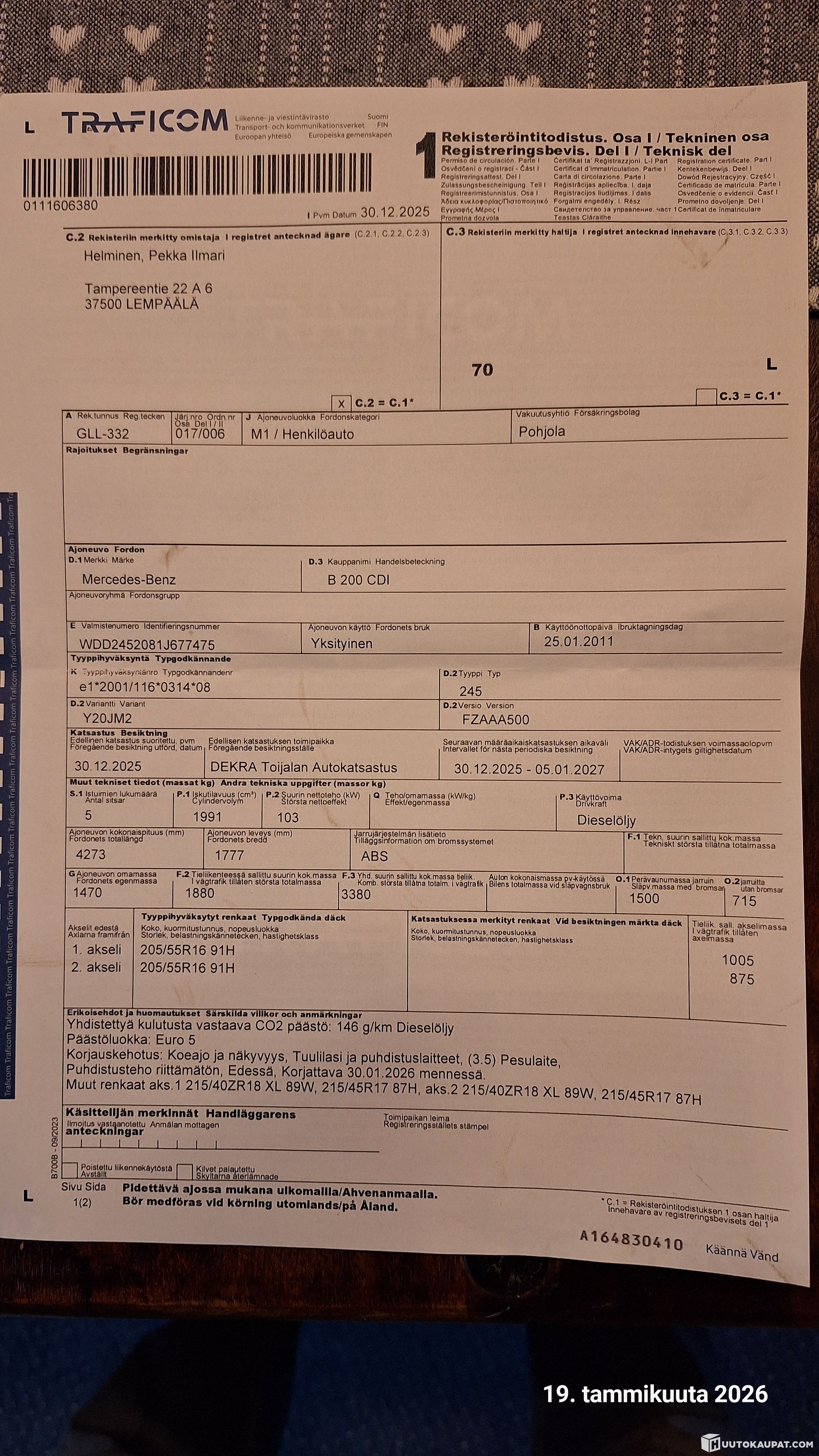 Kaupan päälle tulee vielä kattotelineet ja iCarsoft vikakoodin lukija (n. 10v. vanha). Se on ollut verraton peli, kun on pitänyt etsiä häiriöilmoitusten syitä ja nollata vikakoodeja. Laite on ollut minulla apuna neljän eri Mersun omistusaikana ja annan ostajalle sen käyttökoulutuksen.