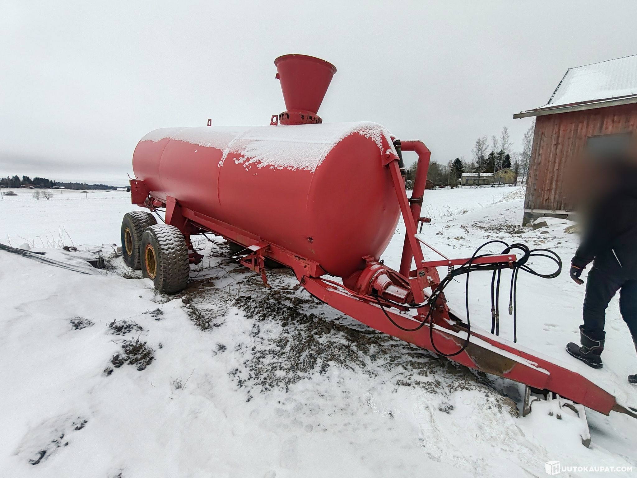 Huutokaupataan kuvissa näkyvä Tempo/Belarus lietevaunu joka on ollut käytössä viimeksi kymmenen vuotta sitten, joten takeita toimivuudesta ei ole, ja säiliön tilavuudesta ei ole tarkkaa muistikuvaa mutta se on ilmeisesti 12m3.