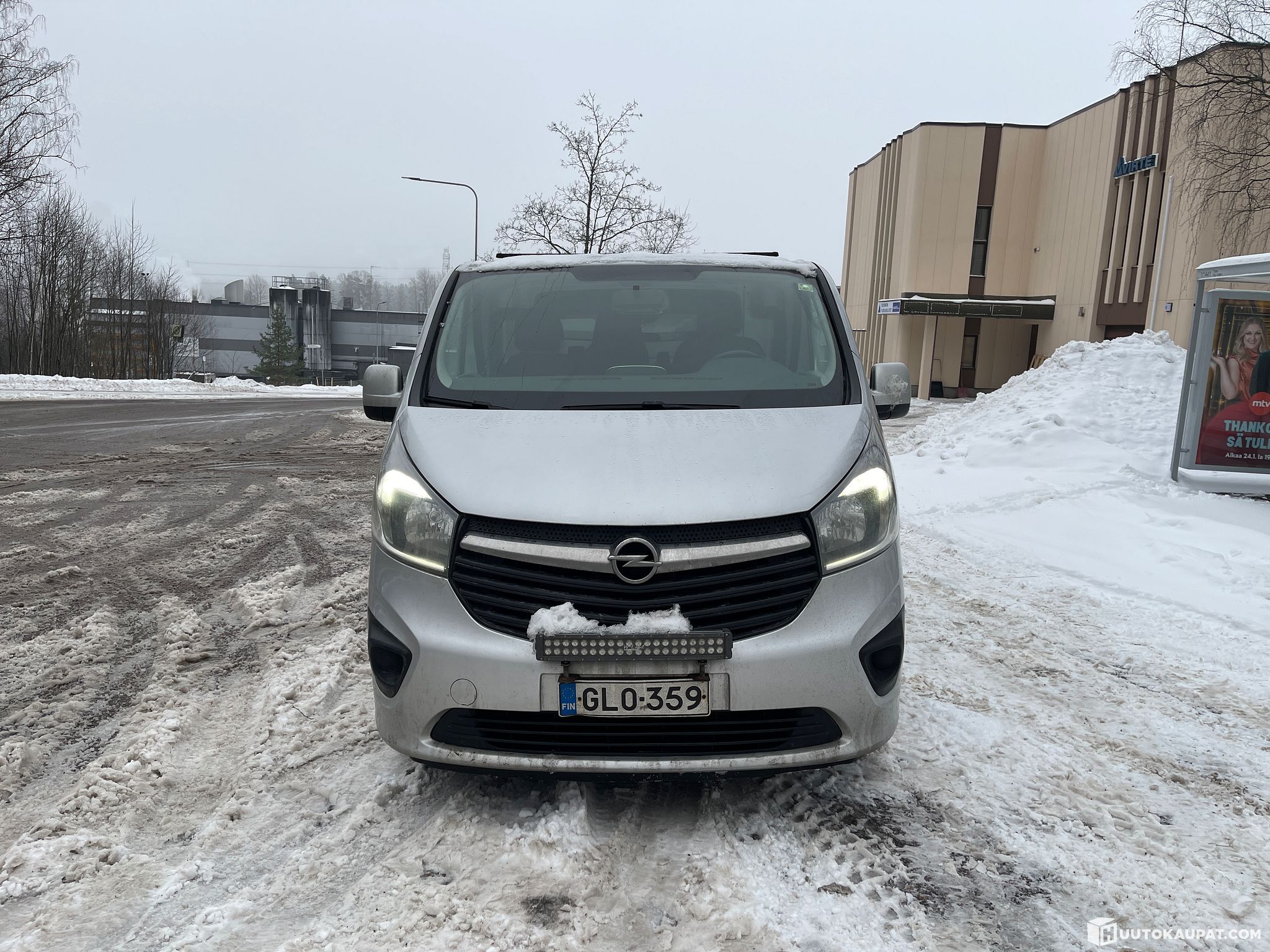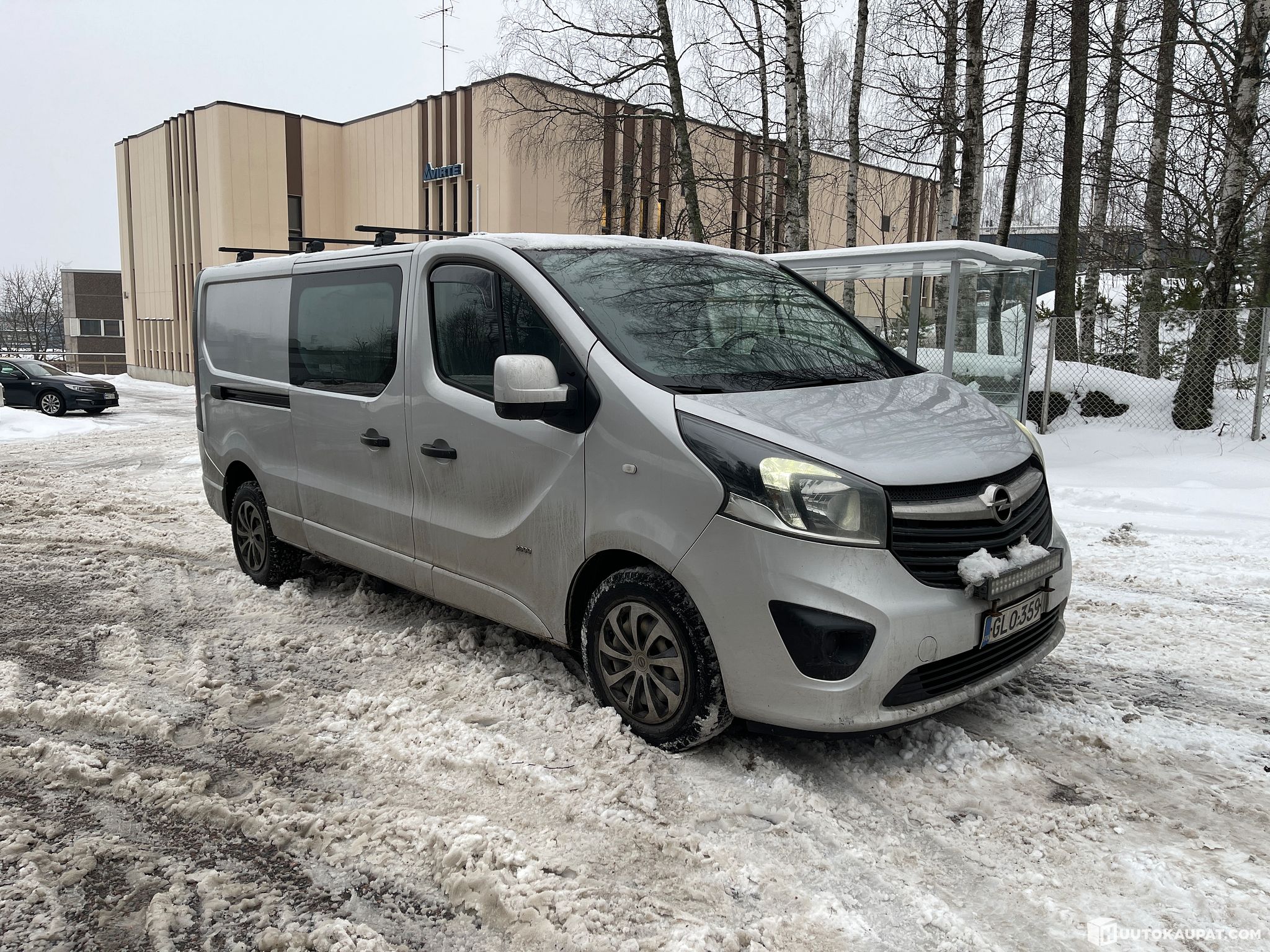 Autoon on jälkiasennettu peruutuskameraa, kattotelinettä ja lisävalotankoa.