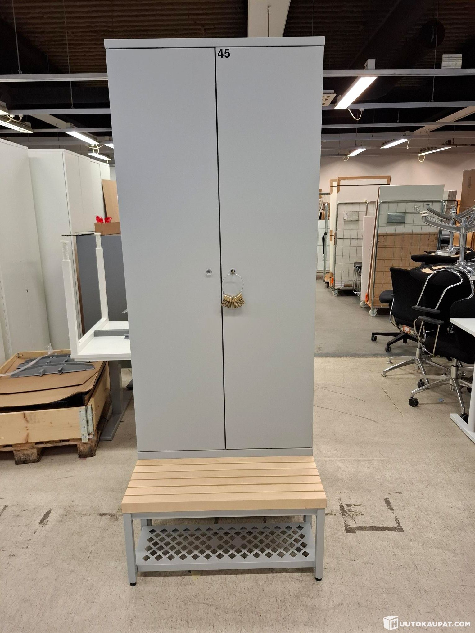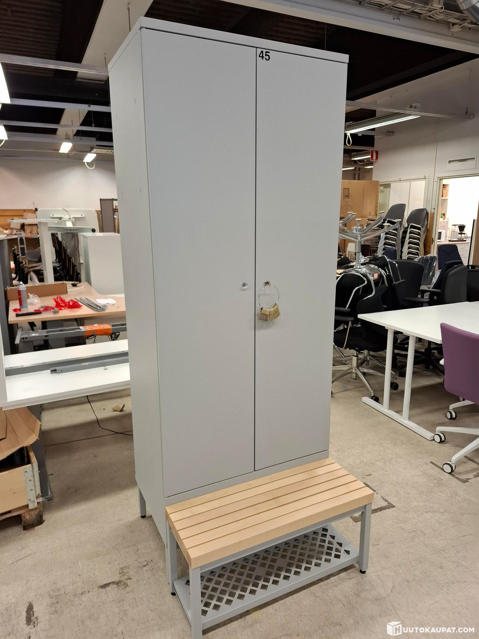 Siisti metallinen Pukukaappi penkillä