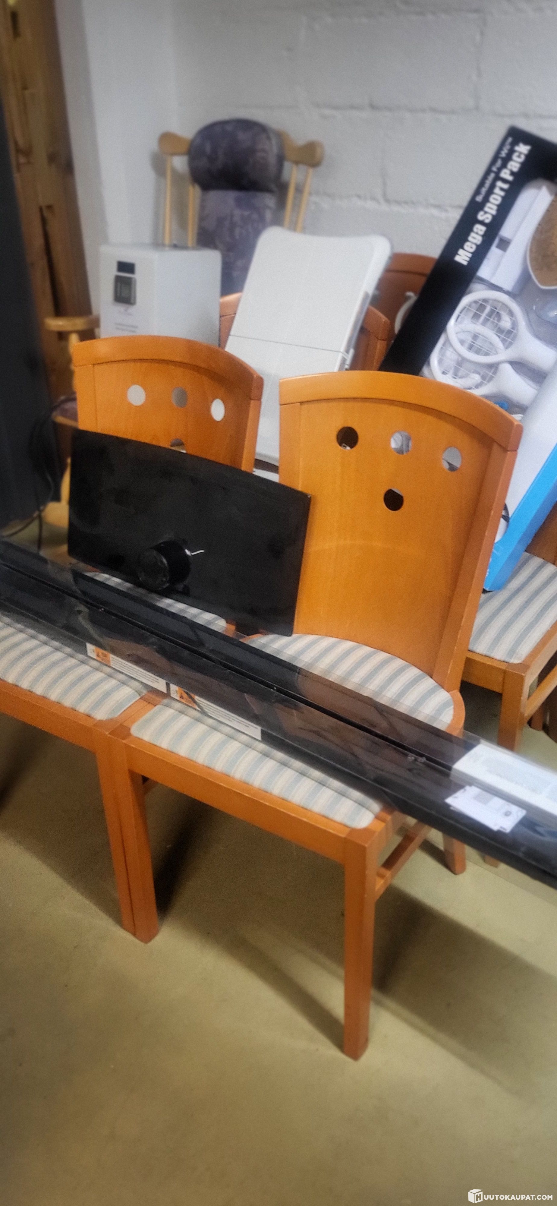 6 kpl.rav.tuoleja(lähes käyttämättömiä) ,kiikkutuoli,PS 2 konsoli + pelit+tarvikkeitä,Hieromatuolin rahastus automaatti (käy myös muuhun tarkoitukseen)Ledi valopaneleita ,(uusi),16 kpl,videotykin erikoisia jalustoja(käy muuhunkin ripustamiseen,puutarhavaloja( uusi),kalvoa (uusi)10pkt. a.1550m yli 1,5km kalvoa.