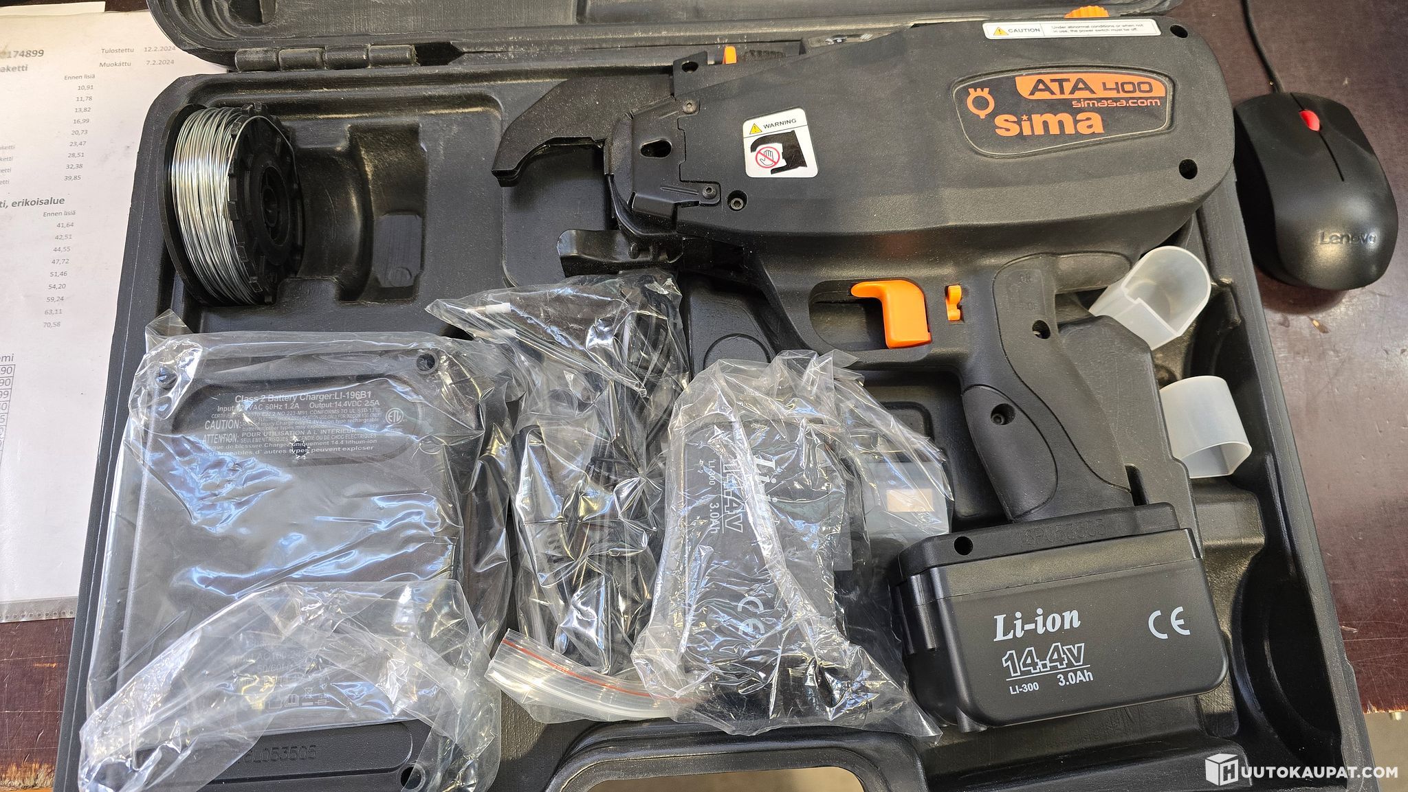 Ylivuotinen ja käyttämätön akkukäyttöinen sidontalaite.