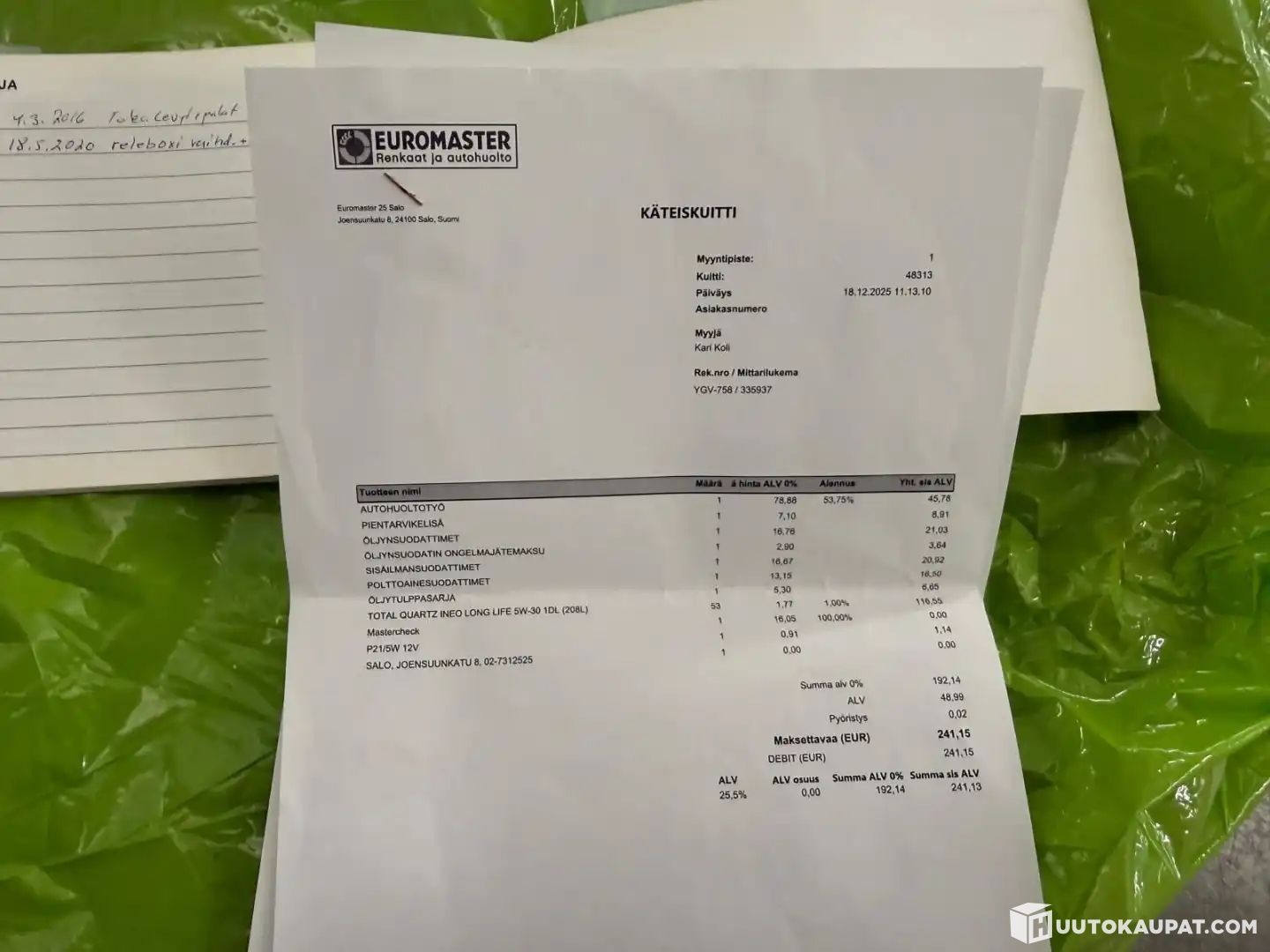 Ennen auton myyntiinlaittoa suoritimme autolle koeajon ja teknisen kuntoarvion, joiden aikana teimme autosta seuraavat havainnot: