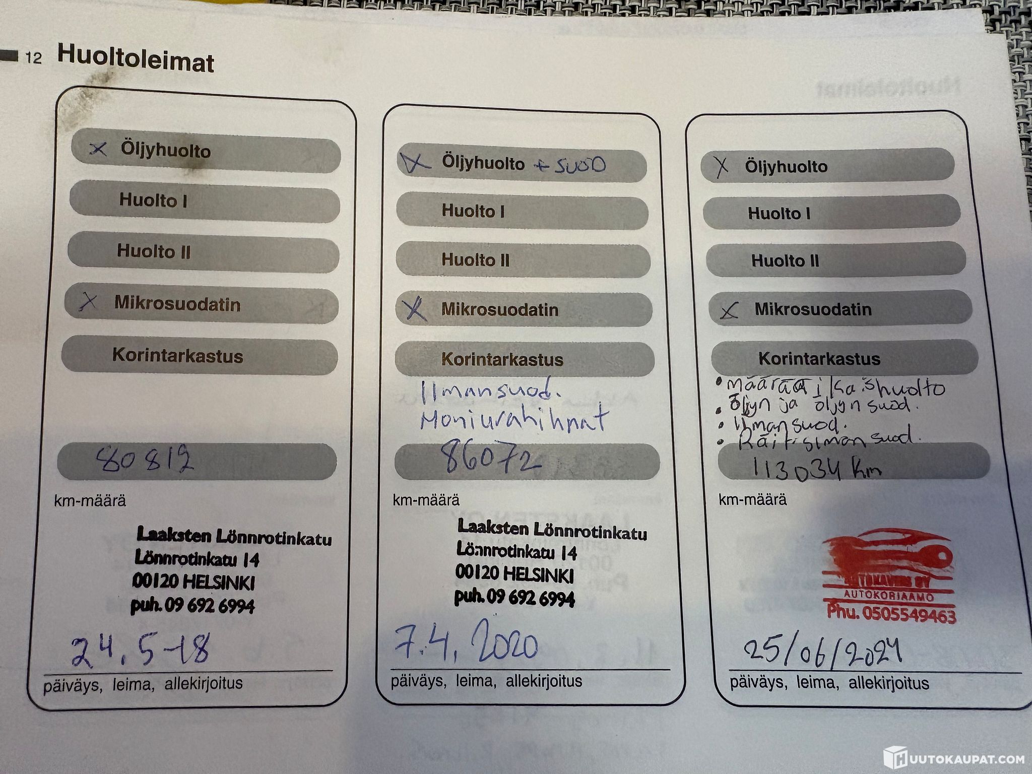 Kyseessä ei ole kiertänyt yksilö, vaan pitkäaikaisessa käytössä ollut auto, jonka historia on selkeä ja dokumentoitu huoltokirjassa.