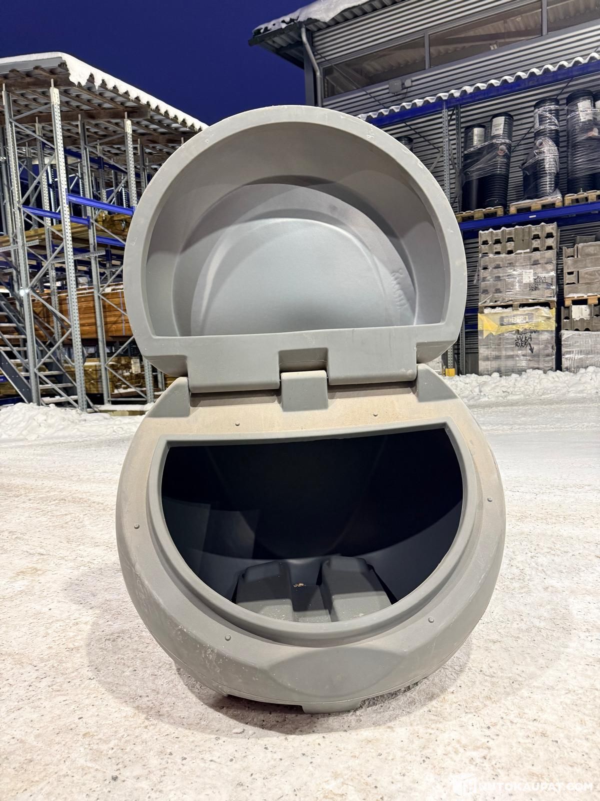 Kotimainen hiekka-astia, joka on ergonomisesti muotoiltu. Valmistettu säänkestävästä polyeteenistä. Maanläheiset sävyt sopivat hyvin suomalaisiin pihoihin. Tilavuus 450 l, leveys 120 cm, syvyys 112 cm, korkeus 89 cm, paino 20 kg.