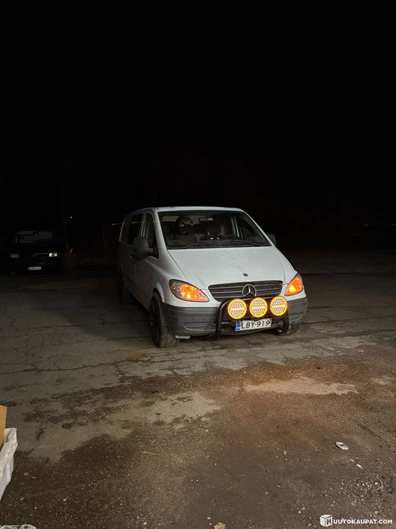 Kuvassa näkyvät 20" vanteet kitkarenkailla ja toisessakuvassa olevat mustat pienemmät alut kesäpyörillä. Karjarauta joka kunnolla kiinni ja siinä 3kpl Siberia strandseja. Autosta löytyy Bt-soitin .