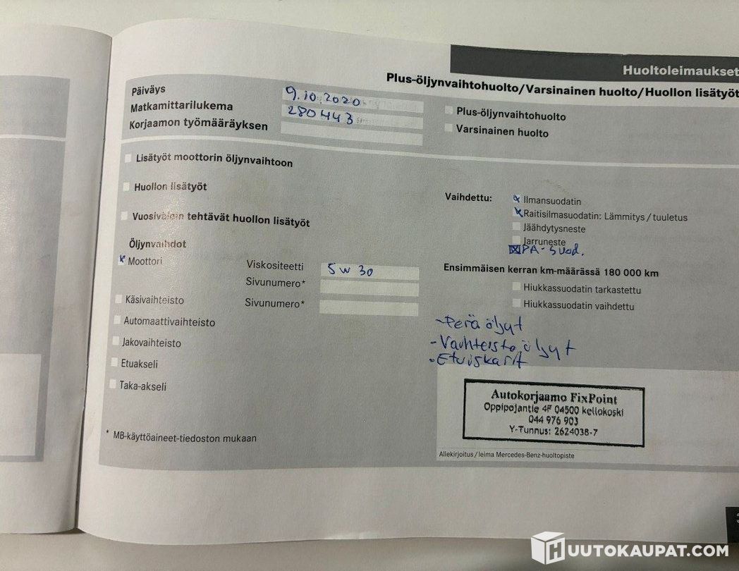 Sisätiloiltakin siisti ja ehjä.(kuskin penkki vähän kulunu näkyy kuvissa) huoltokirjassa 280000km on merkintää isoimmat huollot näkyykin kuvissa. Esim. Kytkin ja suuttimet.
