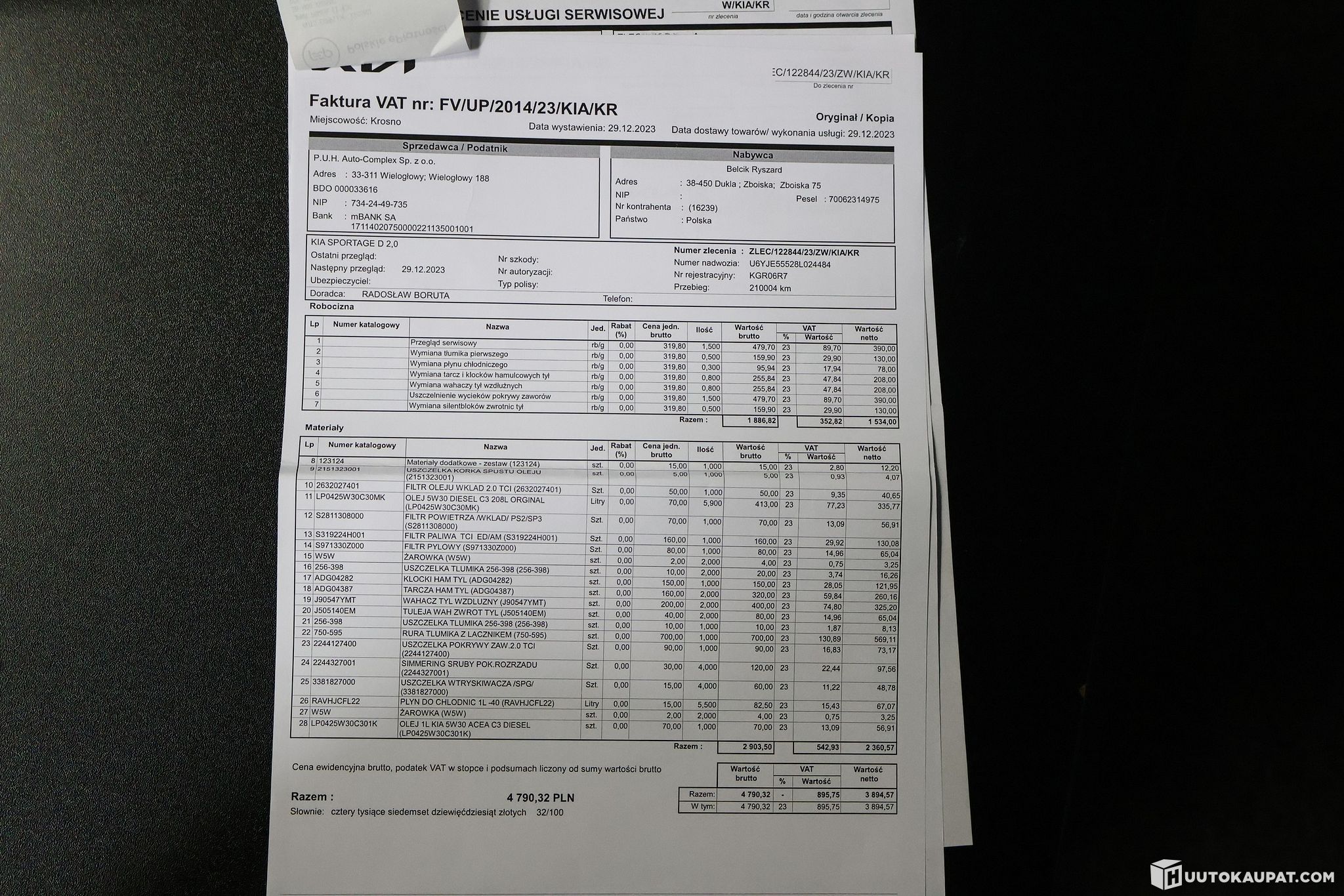- Korin vauriot ja huoltokirja kuvissa.