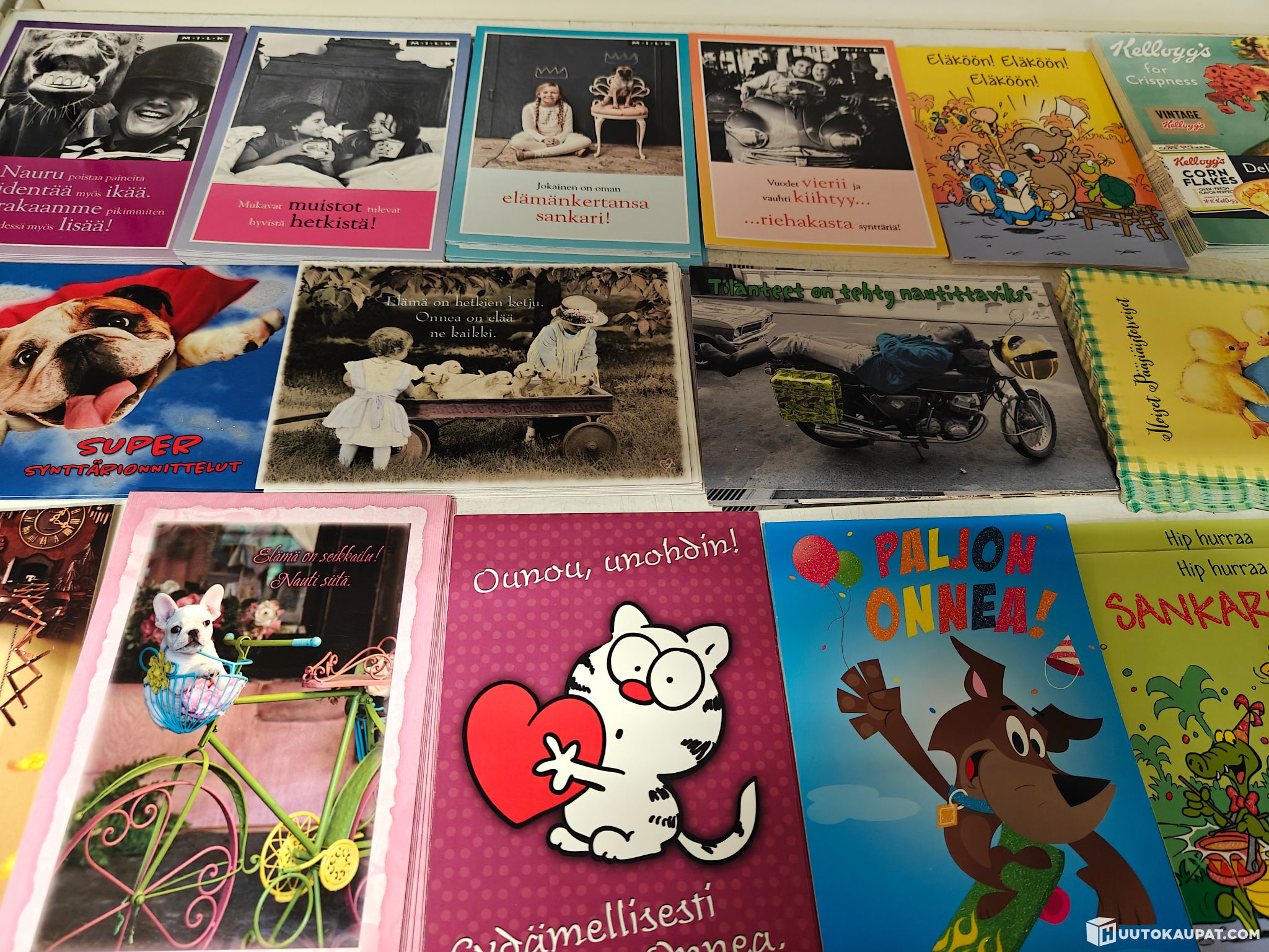 noin 3000 kpl erä Karton 1-os erinlaisia postikortteja yksittäisen kortin hinnat vaihtelevat 0.90€-1.50€ välillä