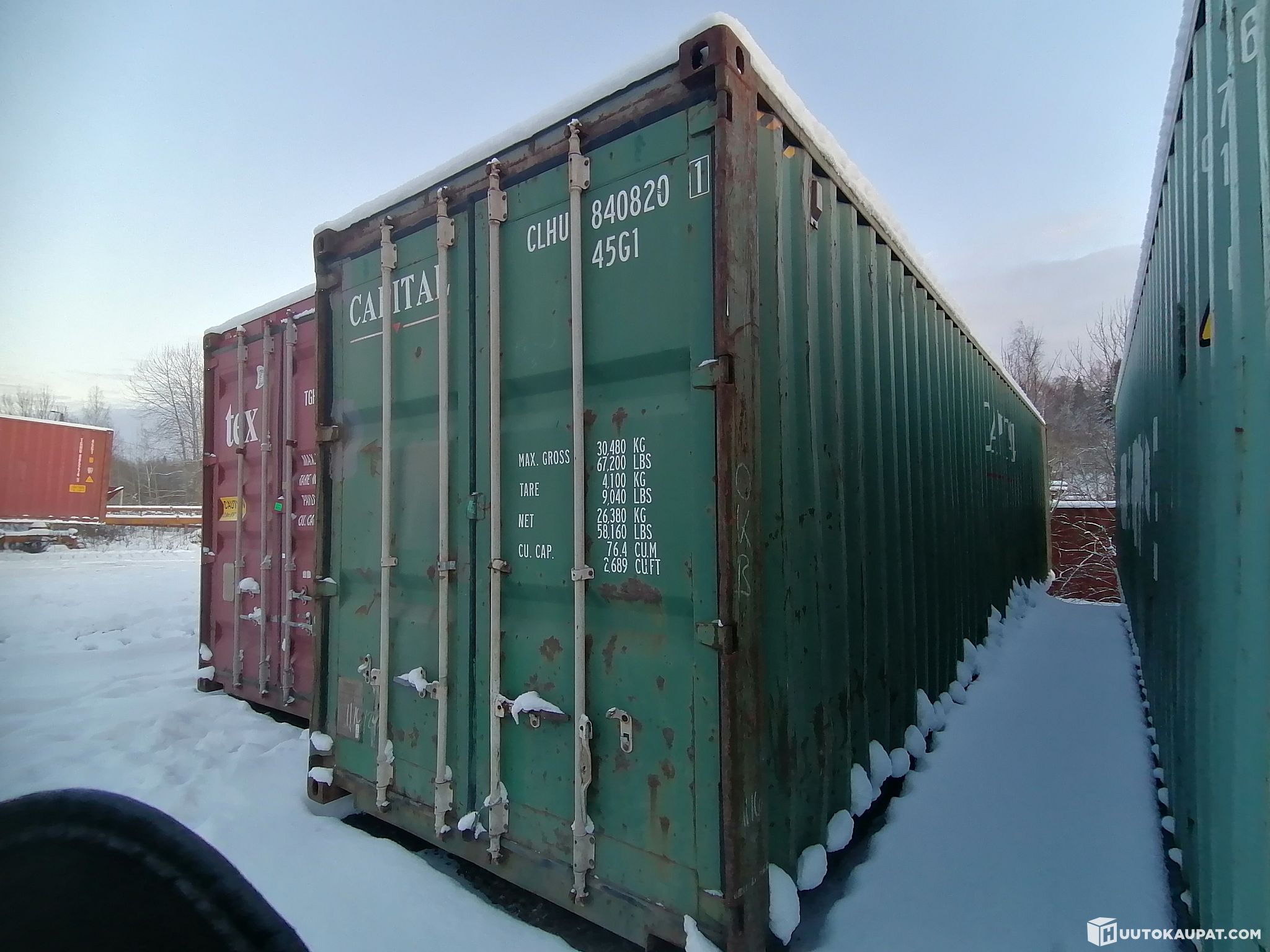 Asis rahtikäytöstä poistettu 40HC korkea merikontti. Sijainti Vantaa Keimola.