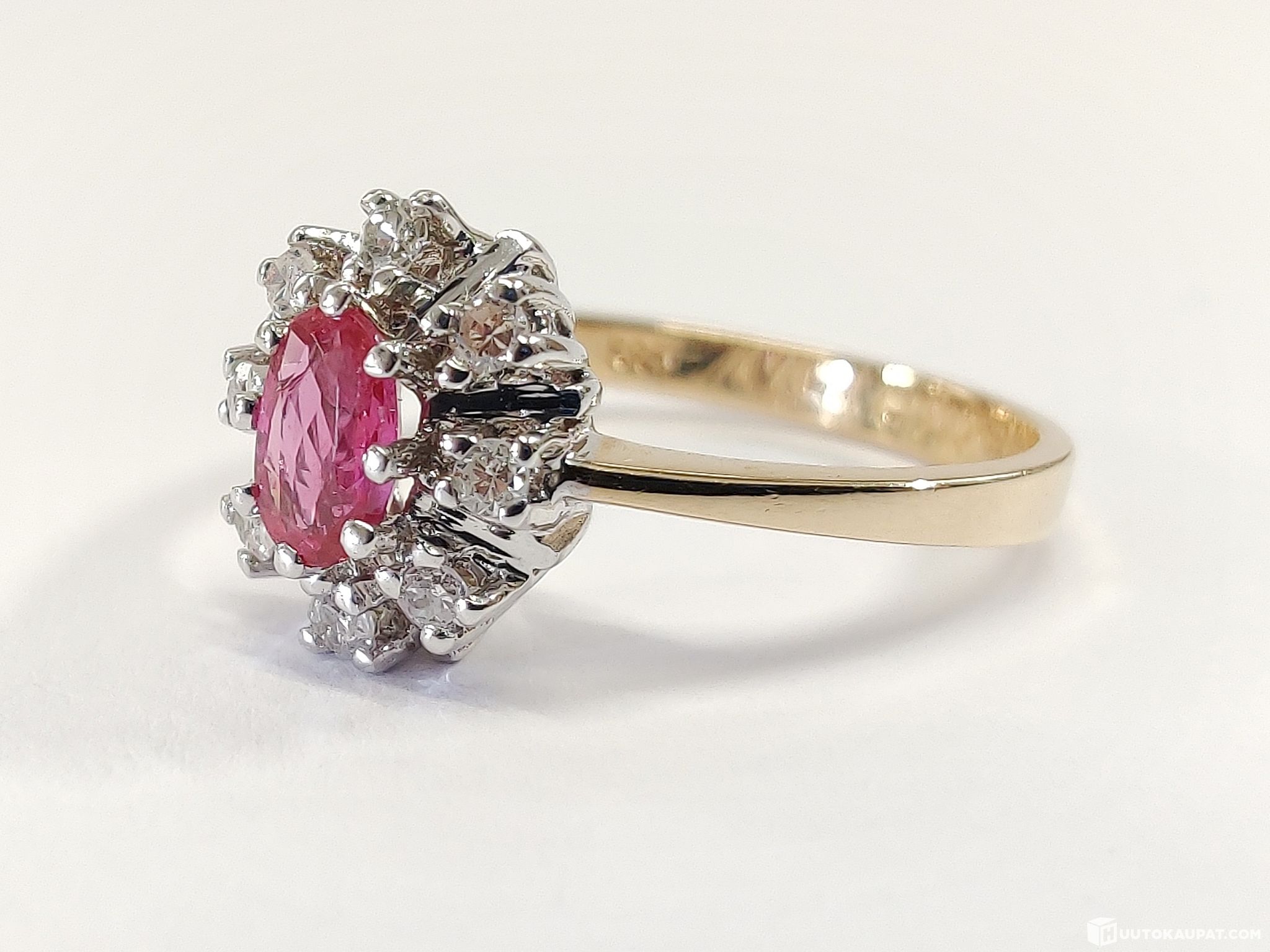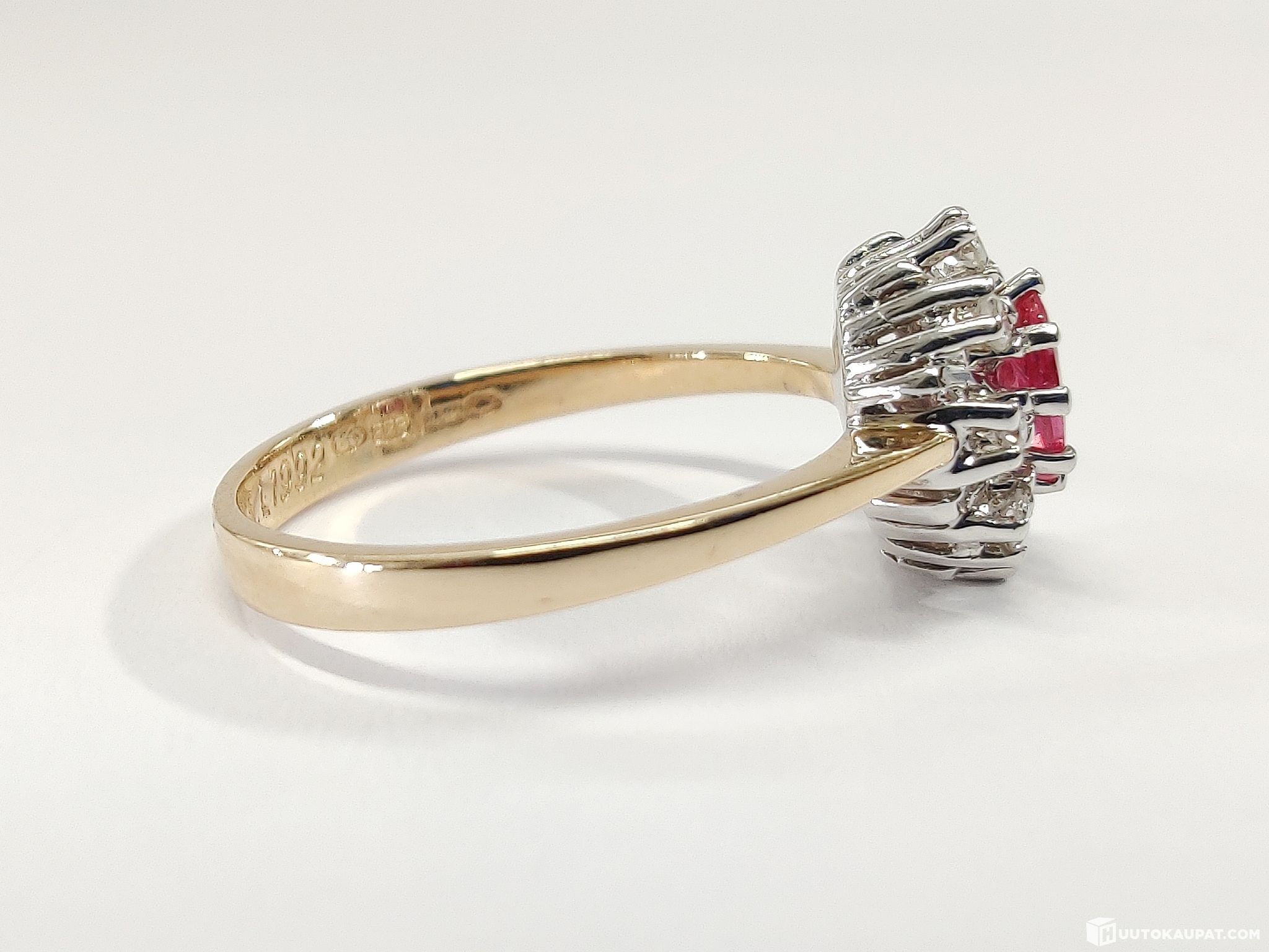 Todella viehättävä timantti-rubiinisormus 585 14k valko- ja keltakultaa.