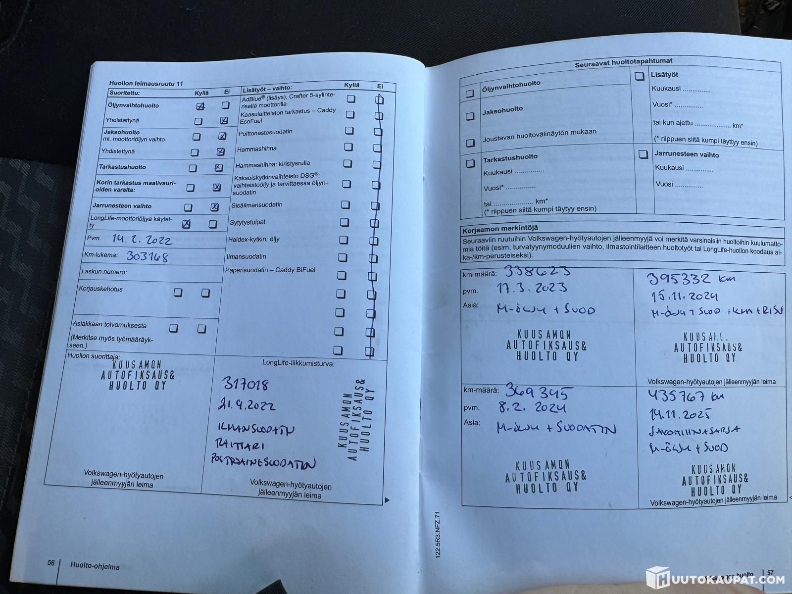Löytyy kirja. Reilusti merkintöjä huolloista