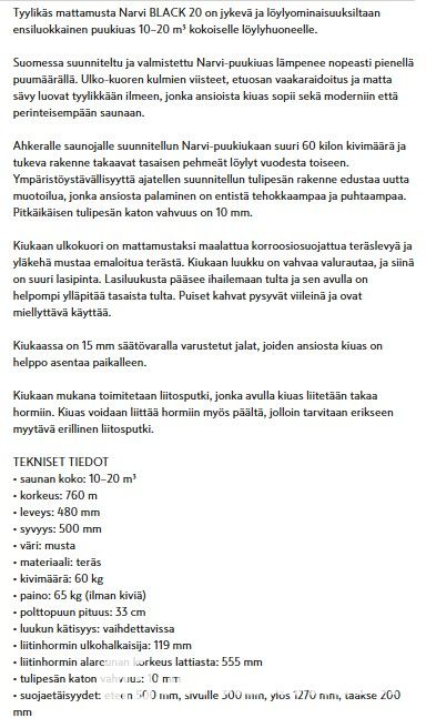 Tyylikäs musta kiuas 10-20 m3 saunaan.