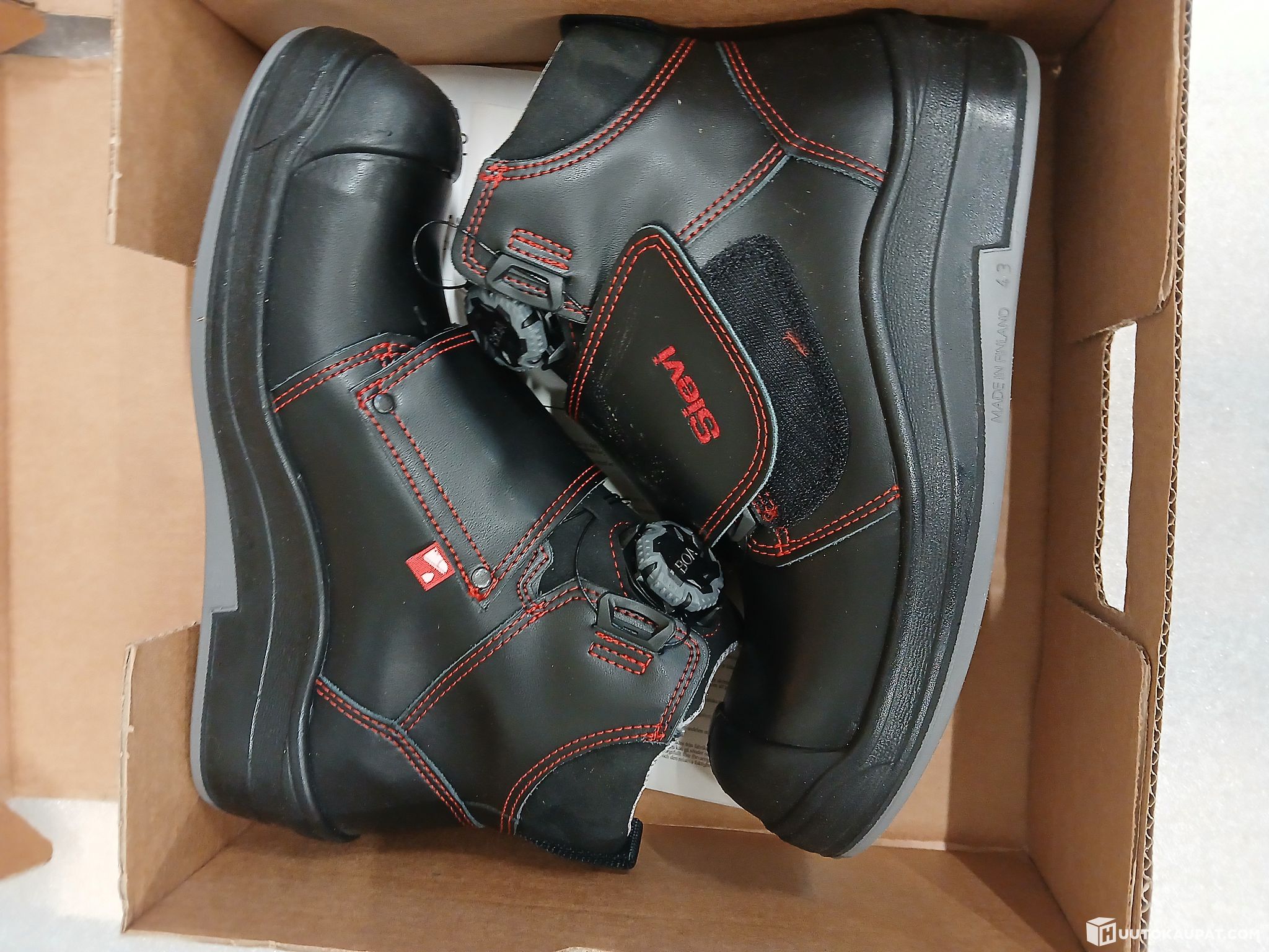 Kaksi paria sievin laadukkaita turvakenkiä.molemmat kokoa 43.sopivat piki/asfaltti/kattohommiin ja normaaliinkin käyttöön jalkineissa 300 astetta kestävät nitriilikumipohjat.lisäksi pohja on joustava.varvassuoja ja naulaanastumissuoja löytyvät myös.tästä kunnon turvajalkineet ammattikäyttöön.jalkineille saadaan tarvittaessa järjestettyä kuljetus koko suomen alueella kotipihaan asti toimitettuna.noudettaessa erää itse saadaan noutoaika järjestymään joustavasti myös iltaisin ja viikonloppuisinkin.noudosta ei myöskään peritä mitään noutomaksuja/noutokuluja.noudolla ei myöskään ole kiirettä saadaan sovittua todella joustavasti tarvittaessa.