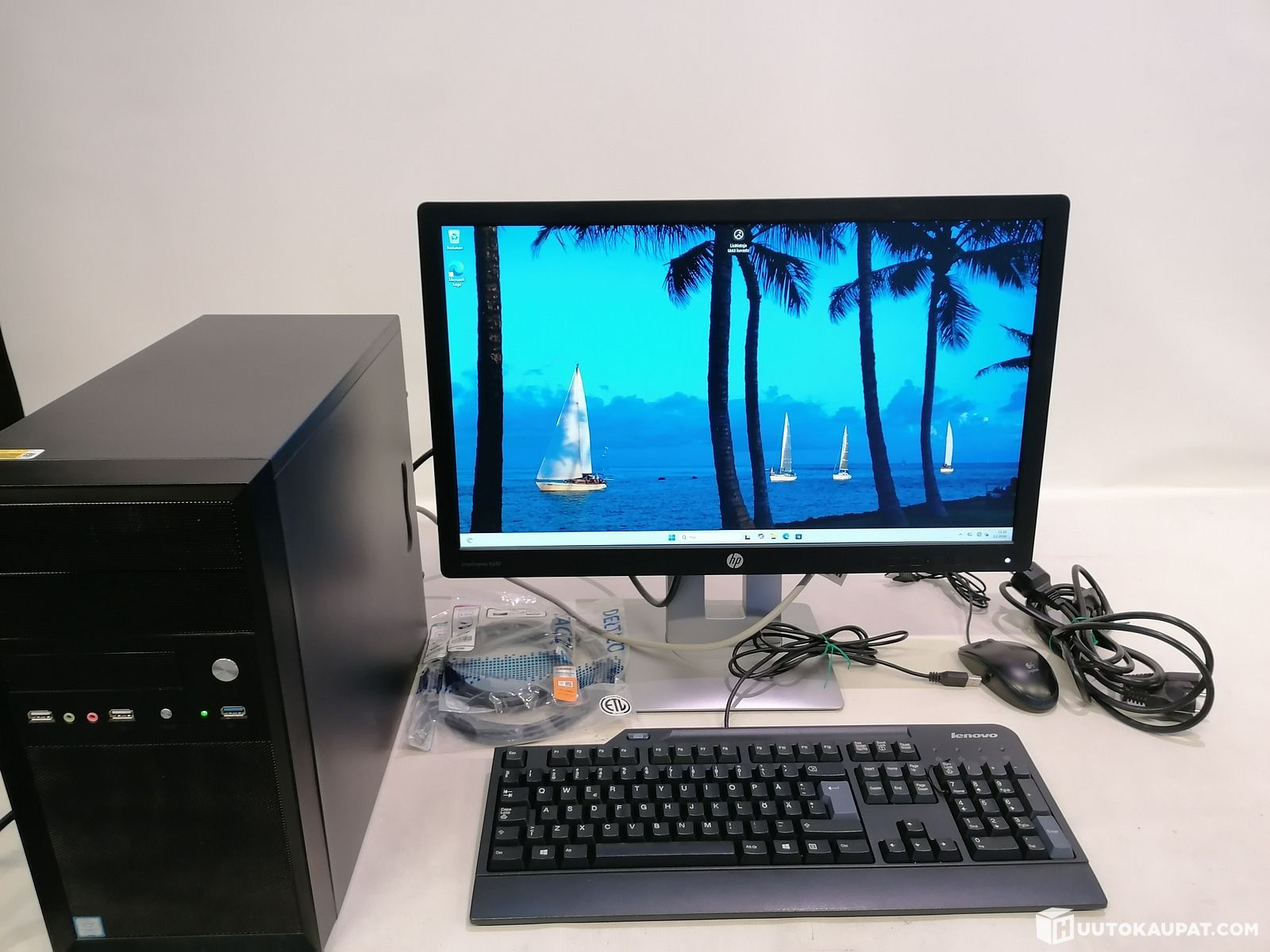 Alunperin yrityskäyttöön kasattu MT mallinen pöytäkone - Win 11 Pro + HP yritysnäyttö, näppäimistö, hiiri ja muuta, Riihimäki