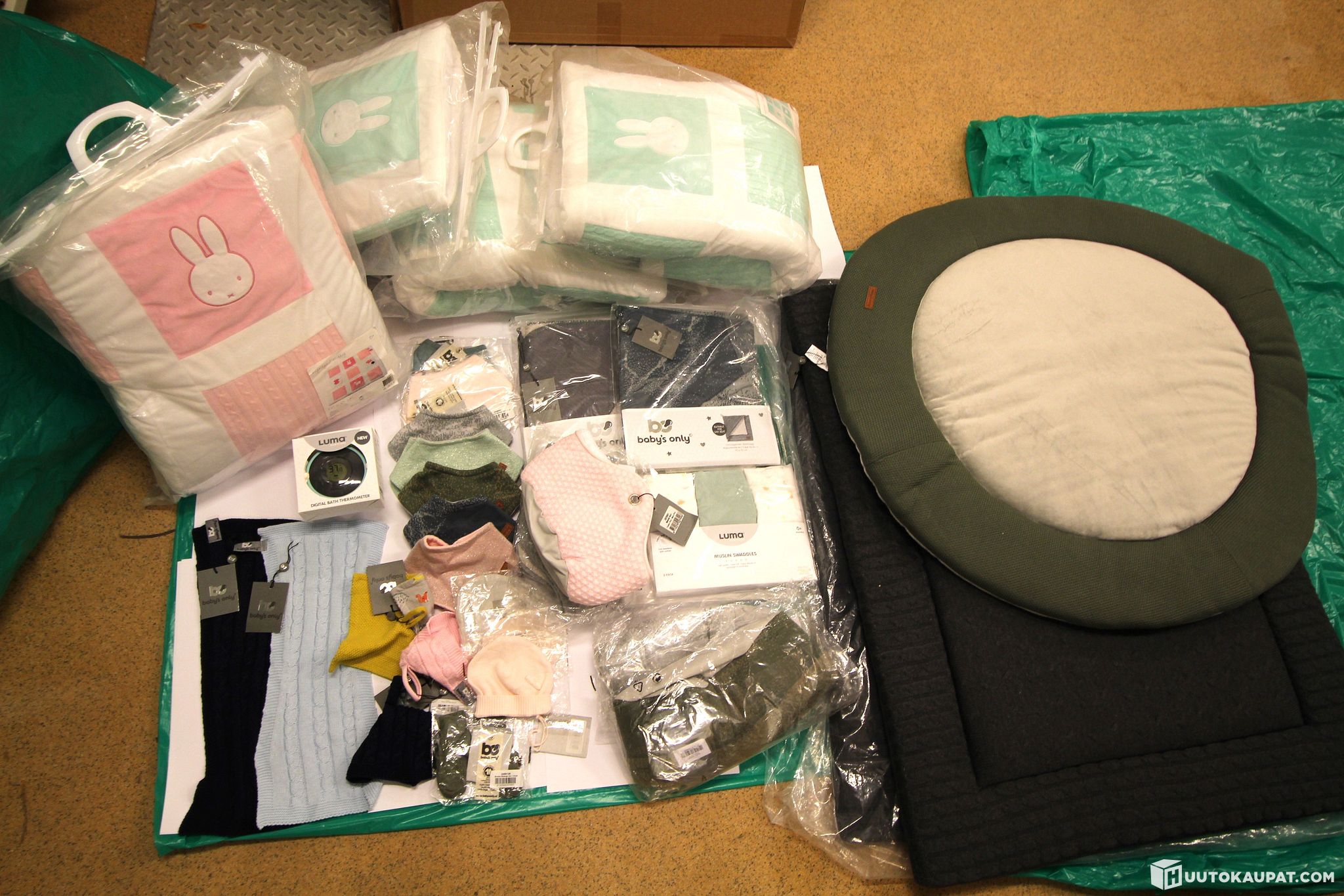 ulosmitattuja vauvan tarvikkeita, mm. harsoja, kaulureita, leikkimattoja. Tarkemmat tiedot myytävästä omaisuudesta sekä myyntiehdoista ilmenevät laaditusta myyntiesitteestä ja liitteistä.
