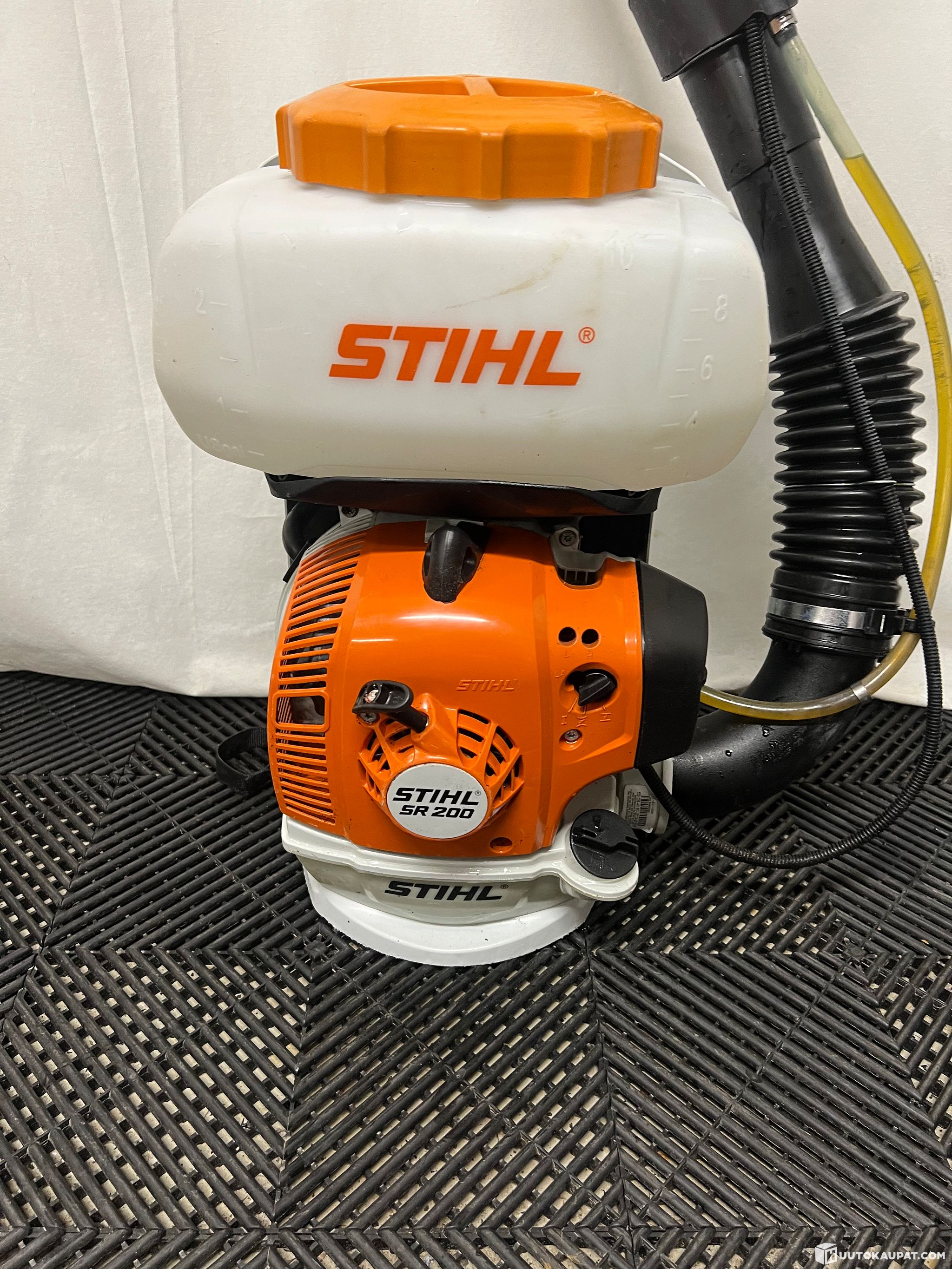 STIHL SR 200 reppuruisku/sumutin, 10 L säiliöllä. Laite on erittäin siistikuntoinen ja kevyt mutta tehokas. Sopii mm. kasvinsuojeluun, rikkakasvien torjuntaan, lannoitteen/aineiden sumutukseen sekä yleiseen pihan ja istutusten käsittelyyn.