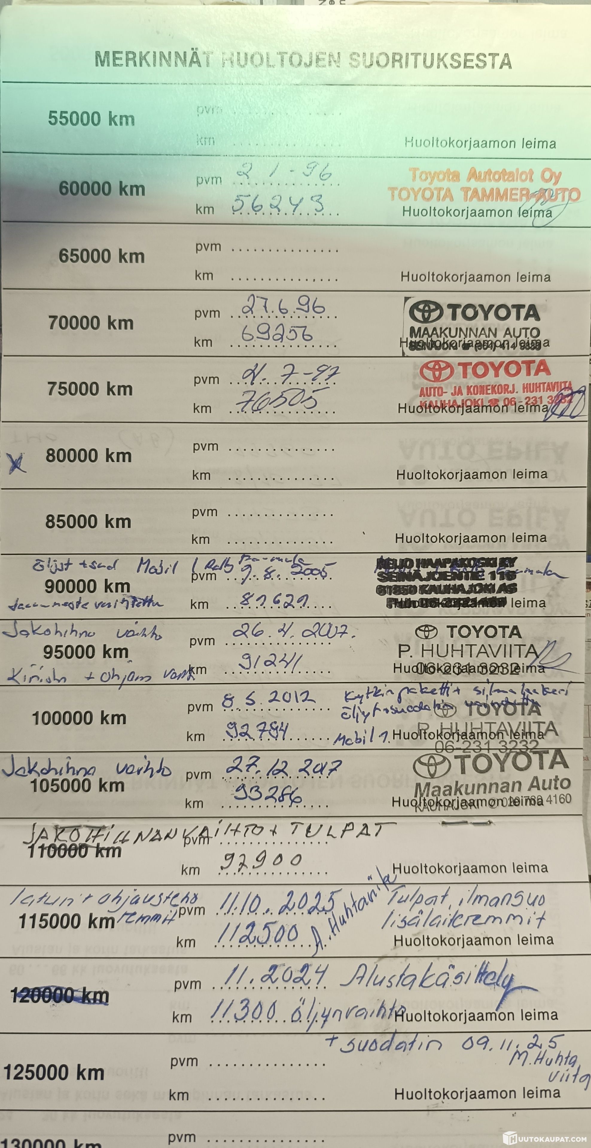 Auto erittäin vähäisellä ja satunnaisella ajolla.