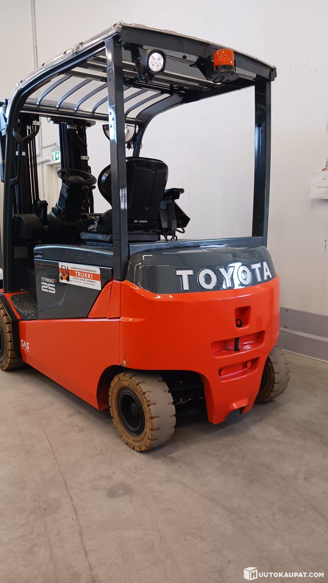 Erittäin nätti Toyota sähkötrukki vähäisillä tunneilla.