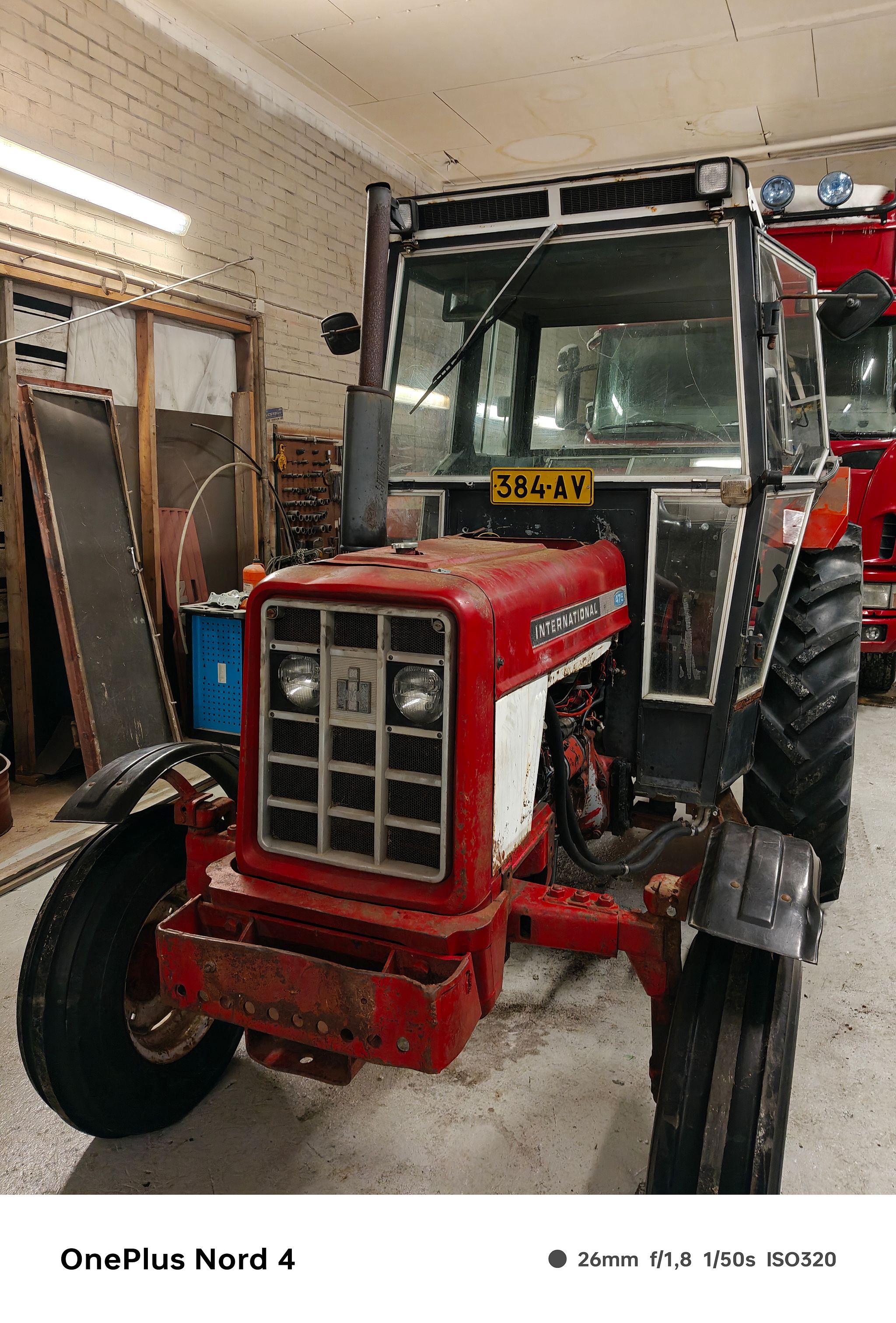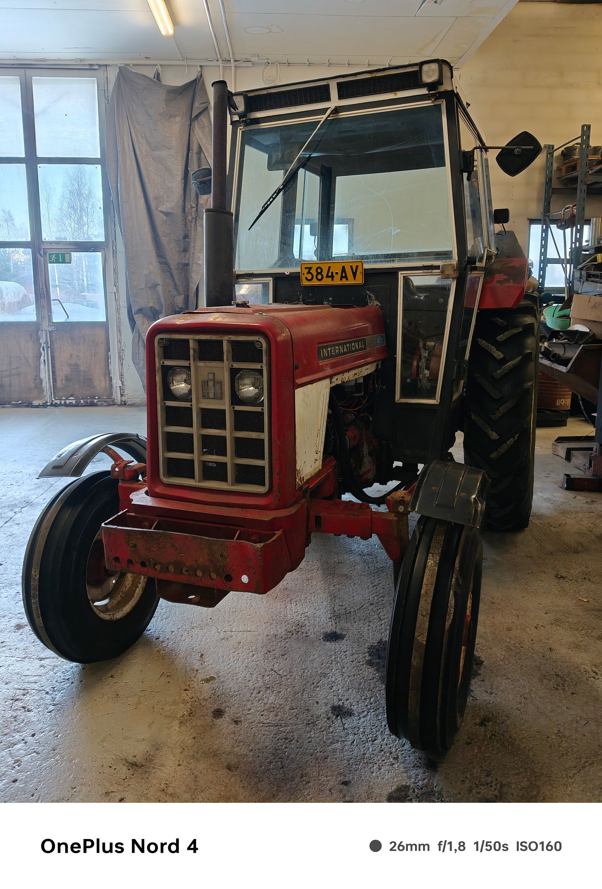 Kuvien mukainen brittimallin international. Maaleiltaan vaikuttaa olevan alkuperäinen lukuunottamatta hytin lokasuojia jotka jossain vaiheessa koneen elämää korjailtu. Pintaverhoilu hytin sisäpinnoilla huono tai puuttuu kokonaan. Koneen huippunopeus 40km/h. Ulosotto, nostolaitteet,hydrauliikka, vaihteisto,kytkin,ohjaus,valot ja jarrut toimii kuten pitääkin. Ei vuotele öljyjä paitsi venttiilikoneiston kannesta. Uusi tiiviste noin 12€. Käynnistyy imusarjan liekkihehkun avustama pakkasella kuten kuuluukin. Tällä hetkellä liekkihehkun johto kytketty irti koska liekkihehku jää suotamaan. Uusi liekkihehku maksaa noin 20€. Koneen jäähdytin on parhaat päivänsä nähnyt, joku korjaillut sulkemalla jäähdytin ripoja. Koneen viimeisimmät tehtävät mm.toiminut nuorisolla henkilökuljettimena ja ollut kesän -25 aikana heinäpellolla erilaisissa tehtävissä. Nyt jäänyt toimettomaksi.