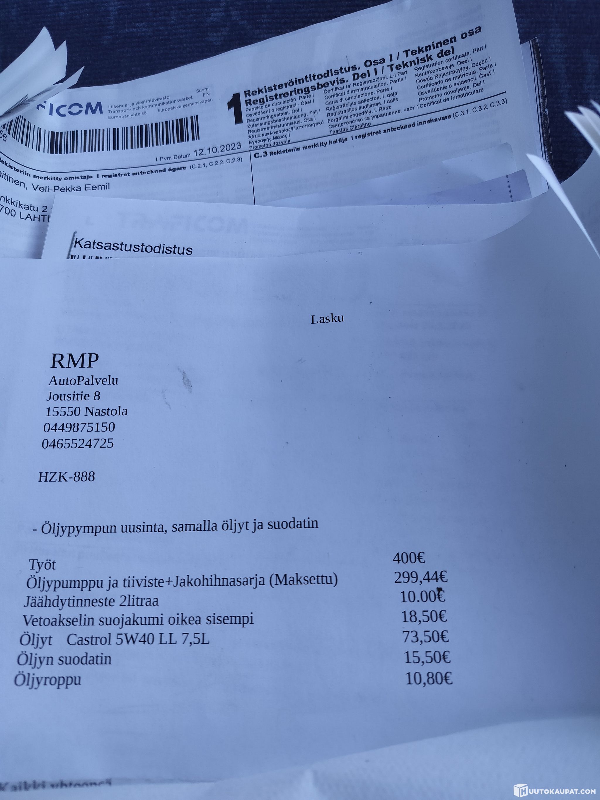 Öljypumppu, jakohihna, vesipumppu,öljyt+suodatin, taka jarrulevyt ja palat