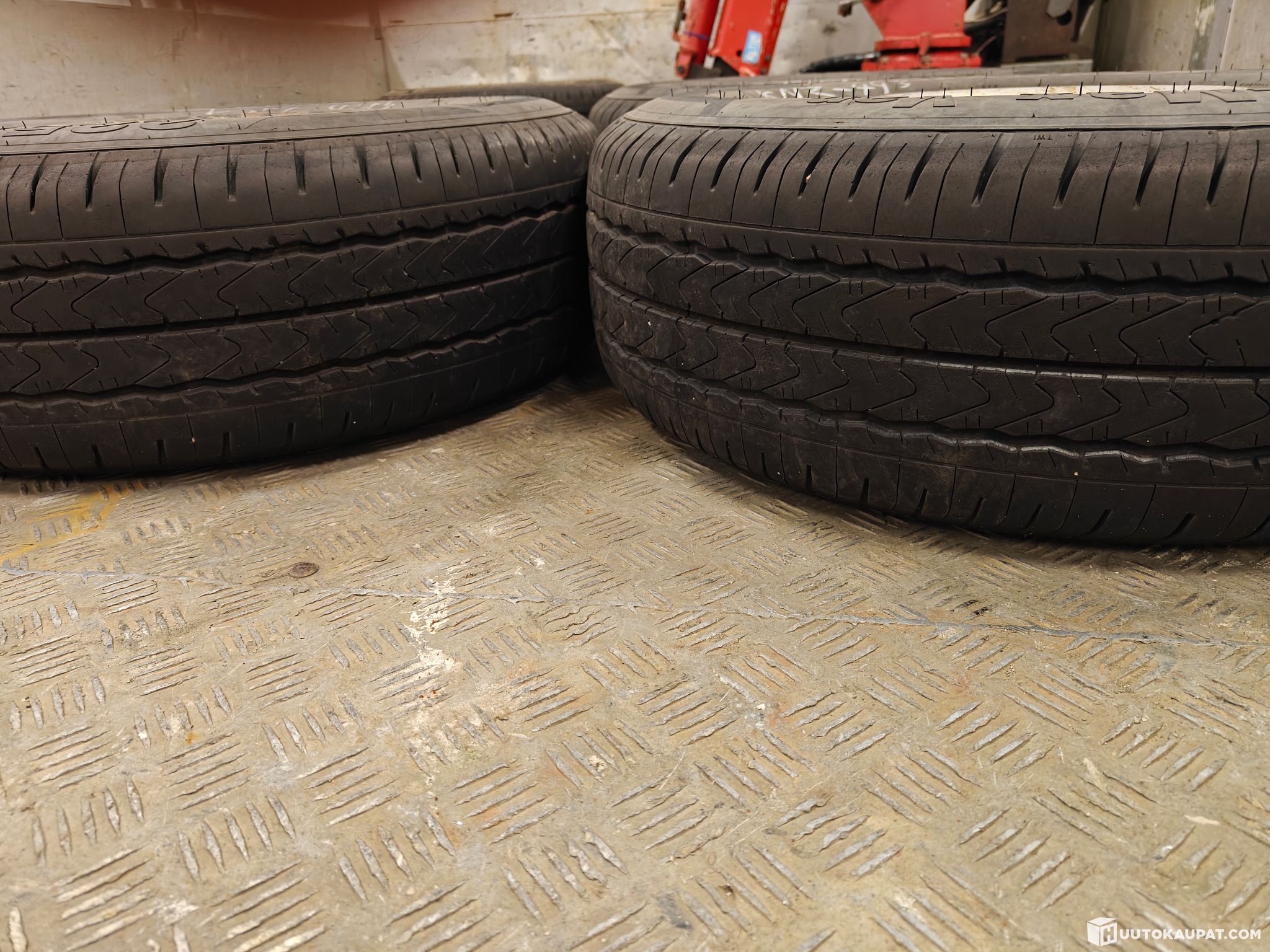 Volkswageniin löytyy kahdet renkaat. Hyvät kesärenkaat ja nyt alla olevat nypityt nastat.