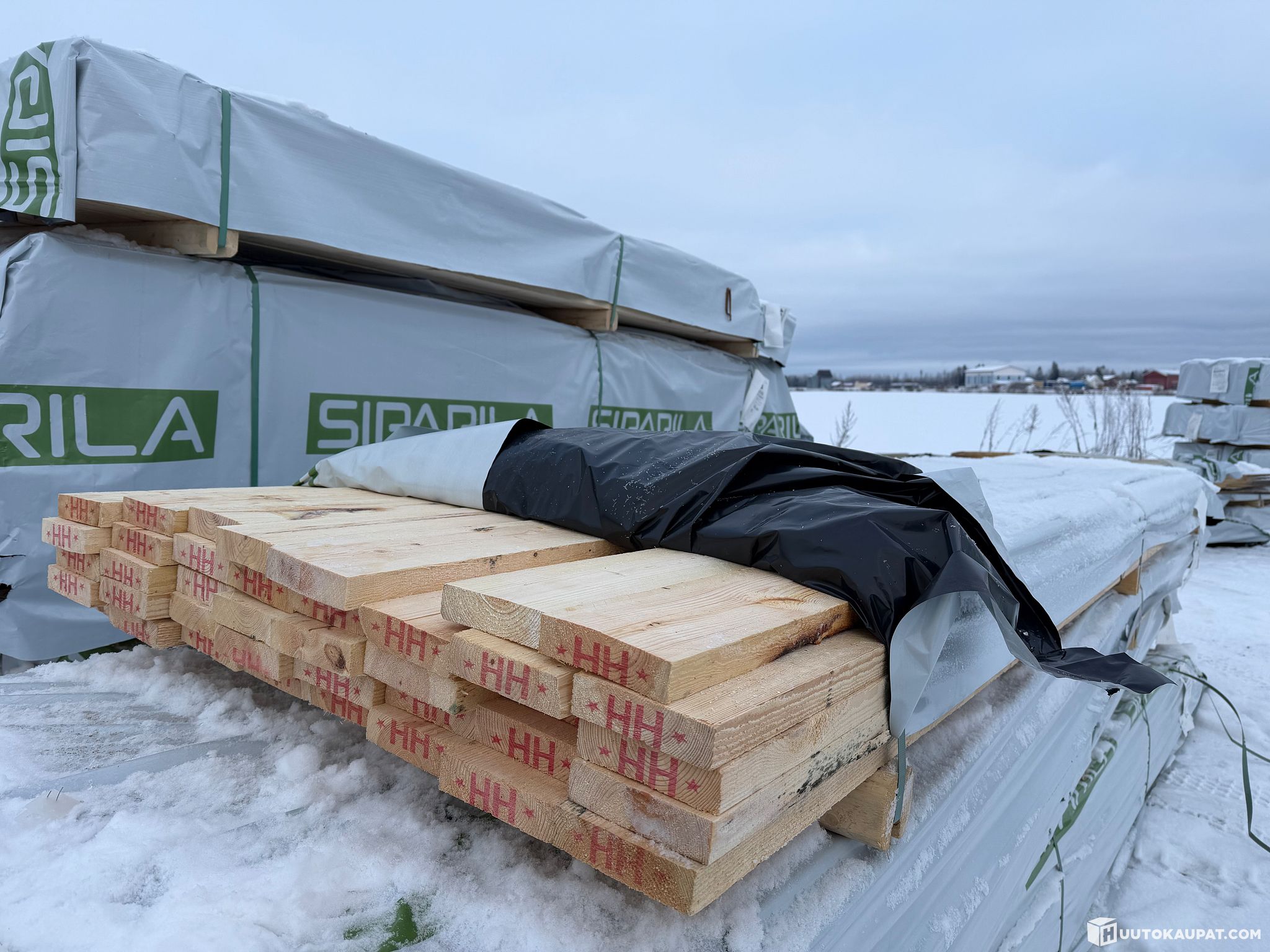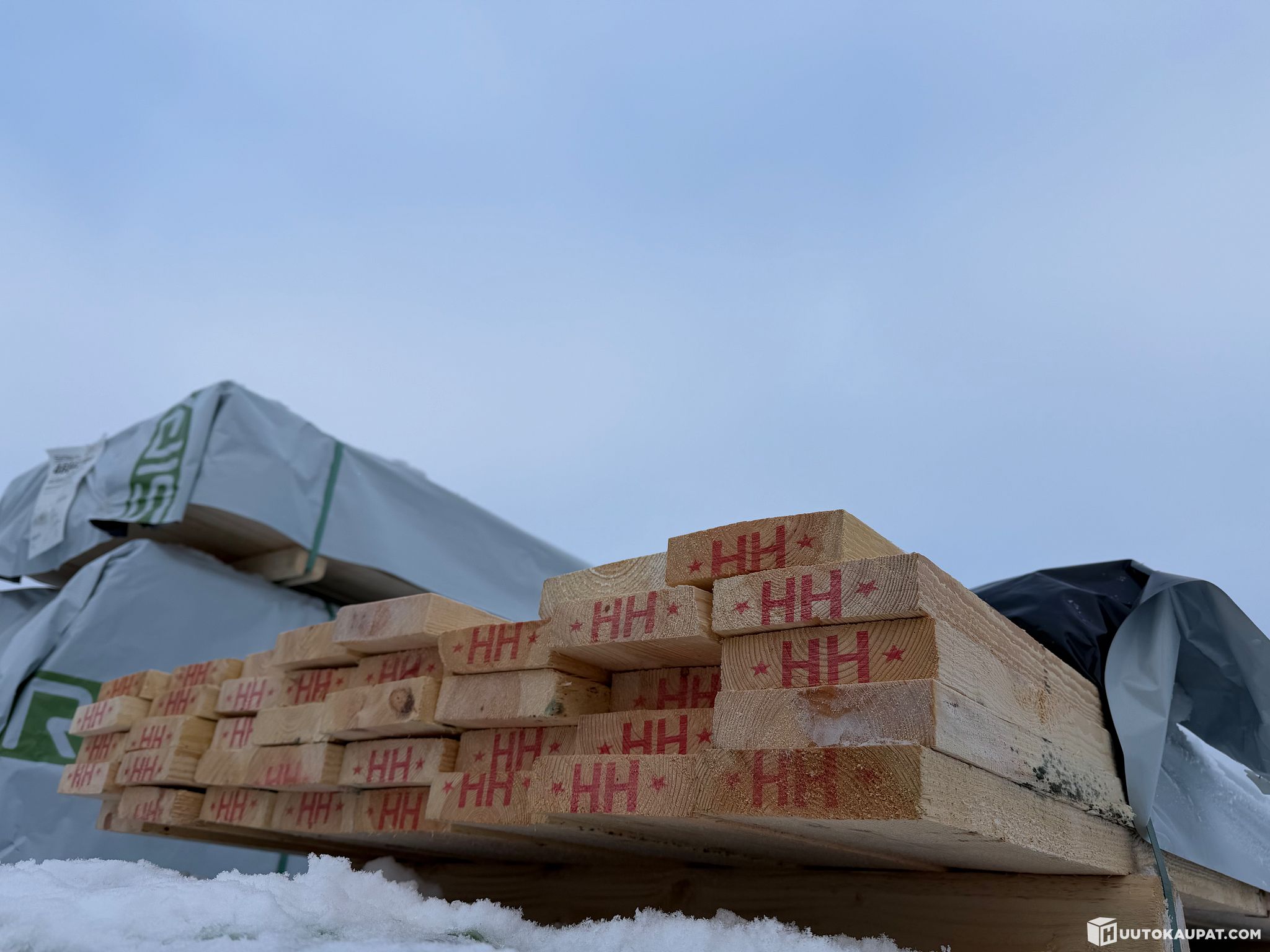 Monikäyttöistä sahatavaraa tehtaan paketissa.