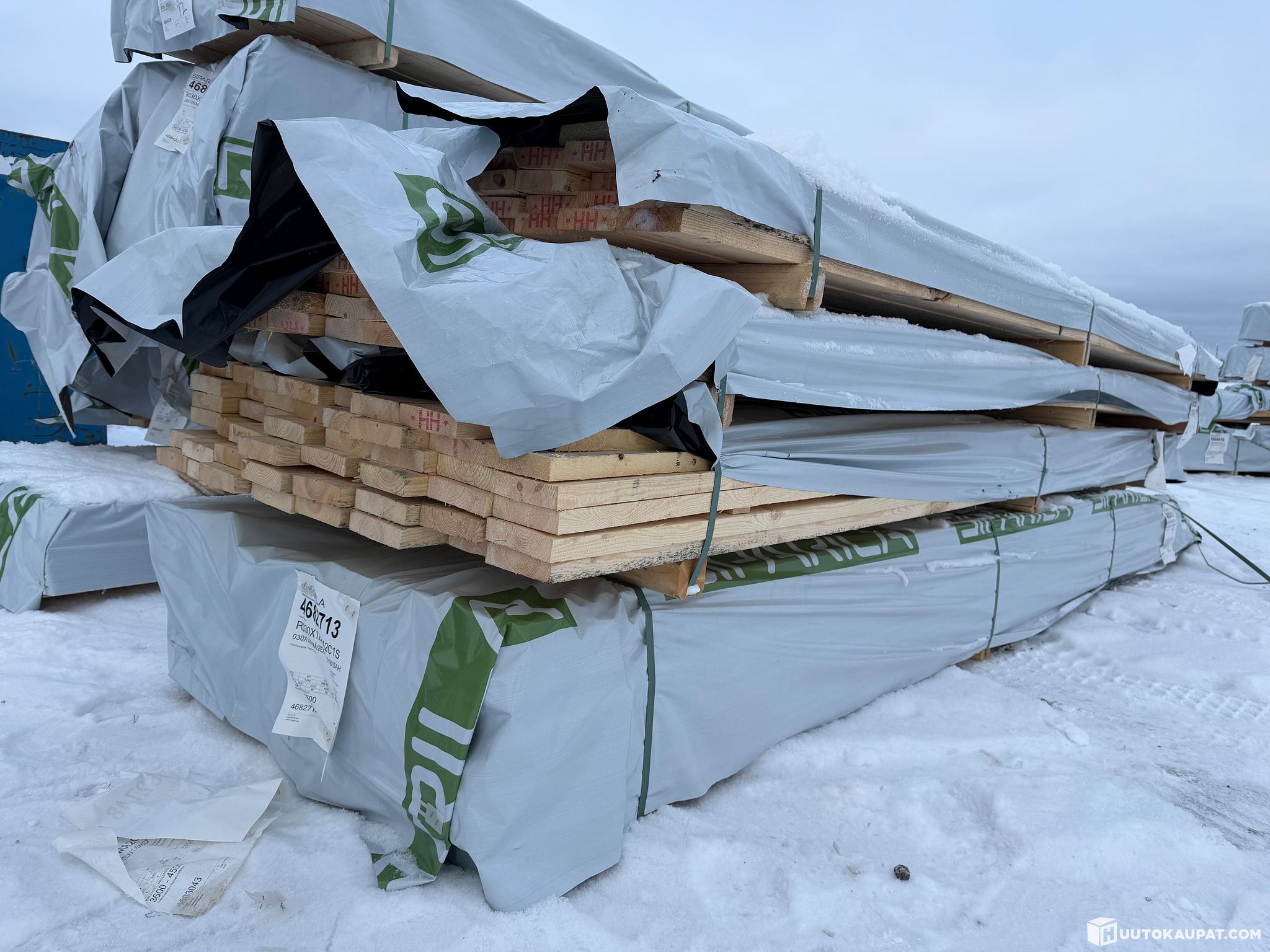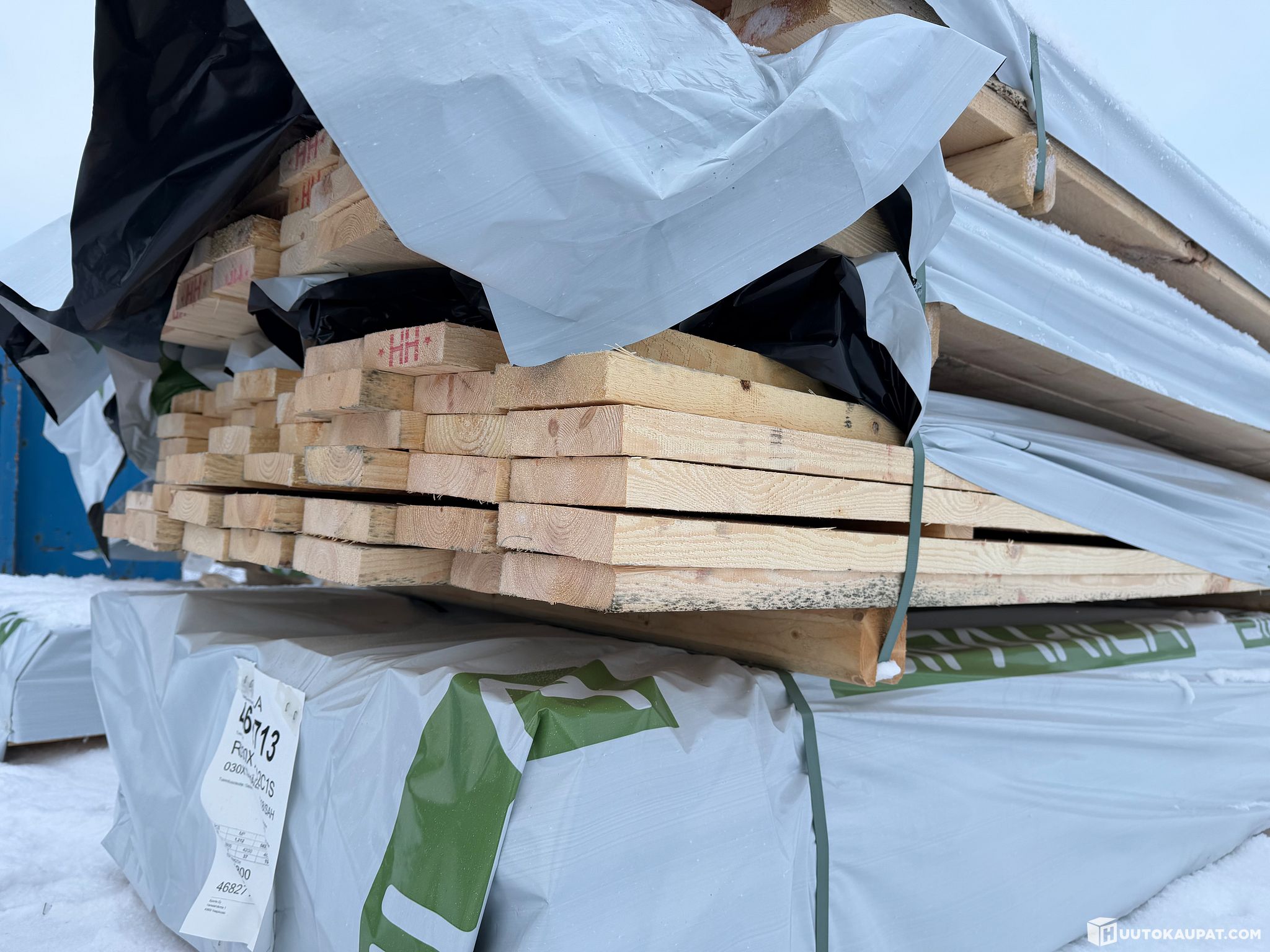 Monikäyttöistä sahatavaraa tehtaan paketissa.
