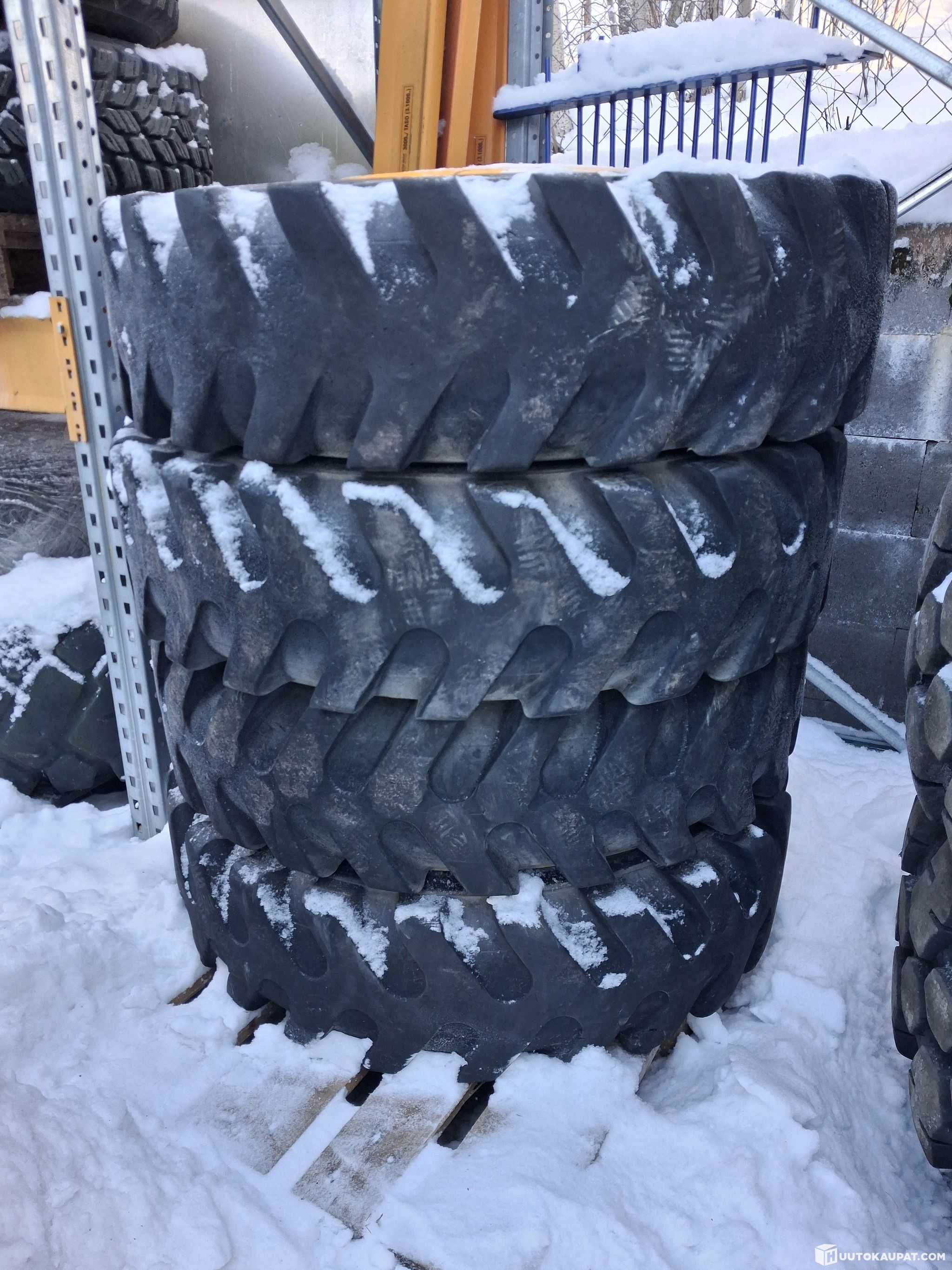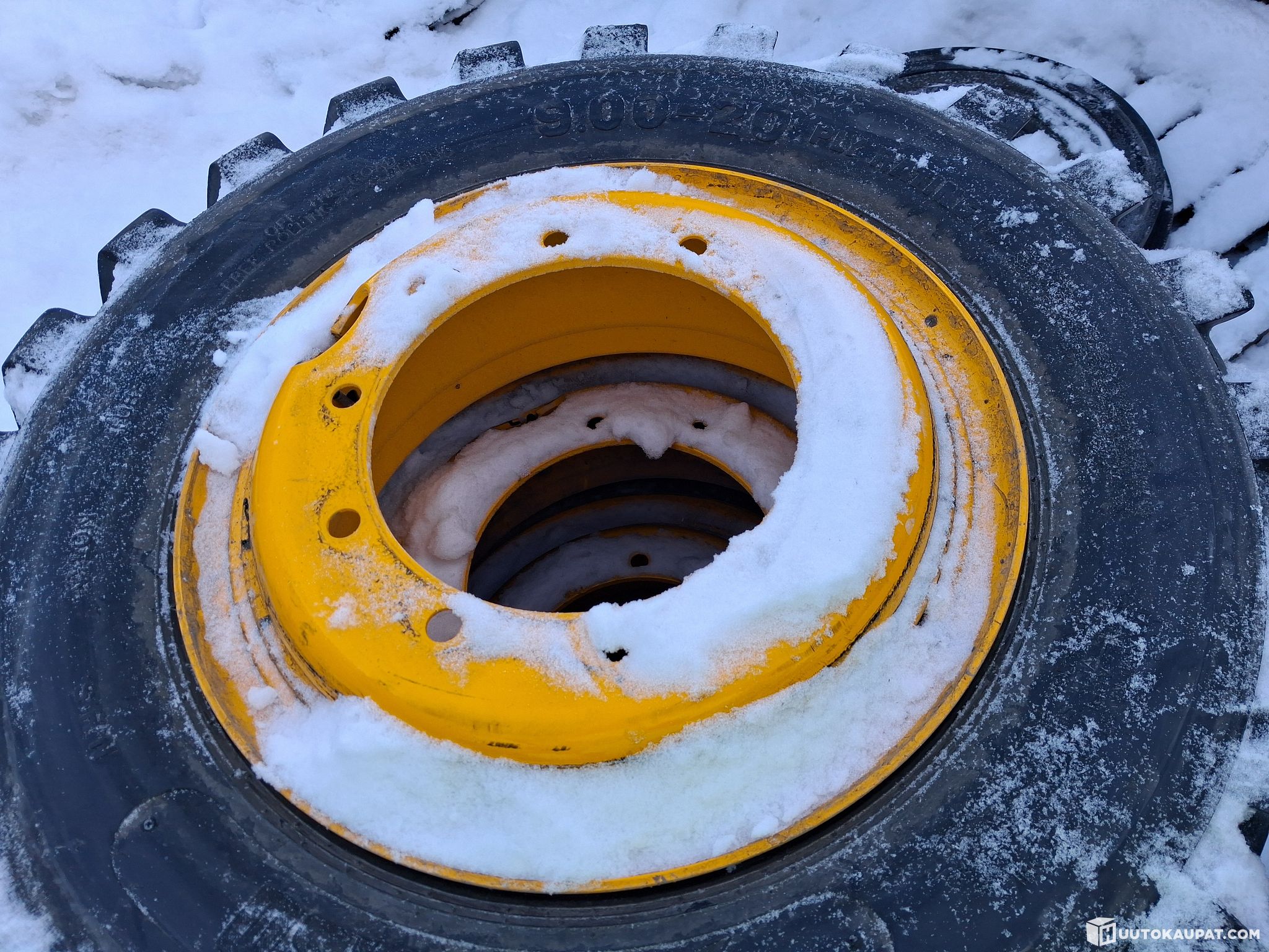Käytetyt, huonokuntoiset 9.00-20 renkaat vanteineen (8 kpl).