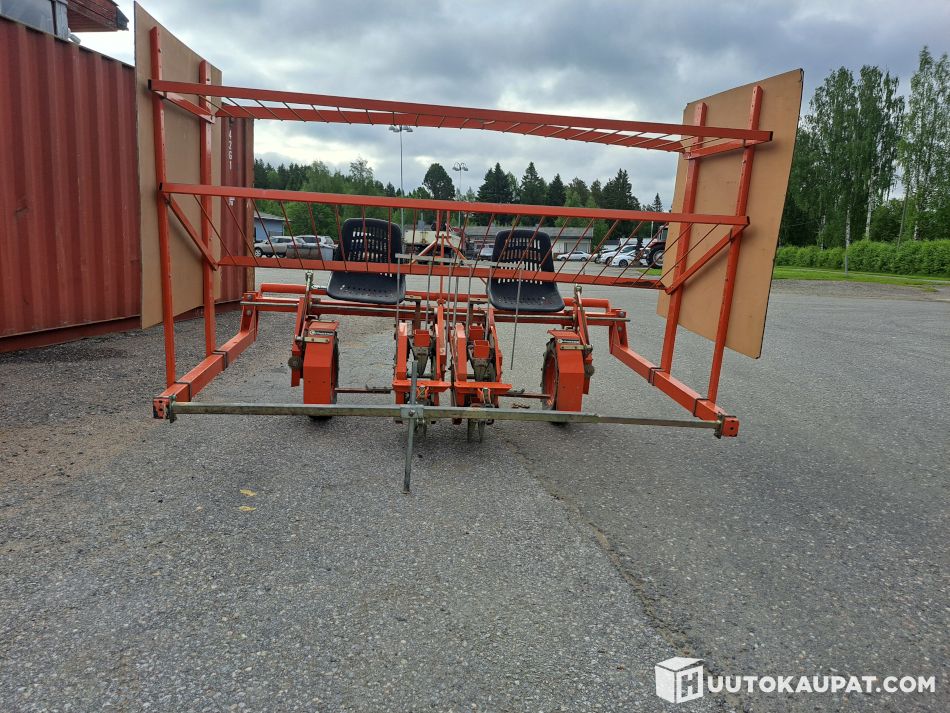 Siistissä kunnossa oleva WOLF istutuskone kahdella istutusyksiköllä, konetta käytetty mansikan istutuksiin. Tämä kone istuttaa muovin läpi.