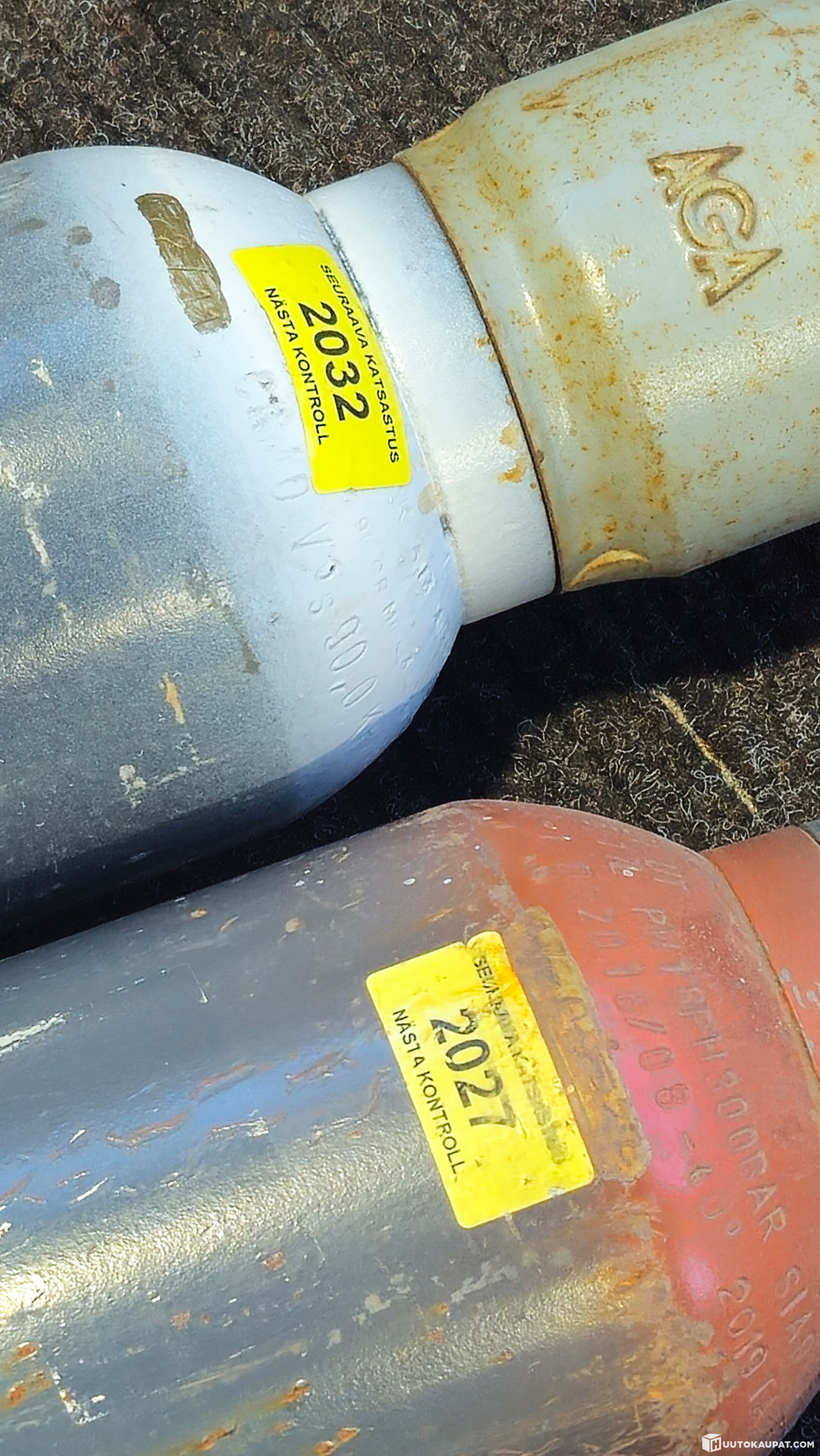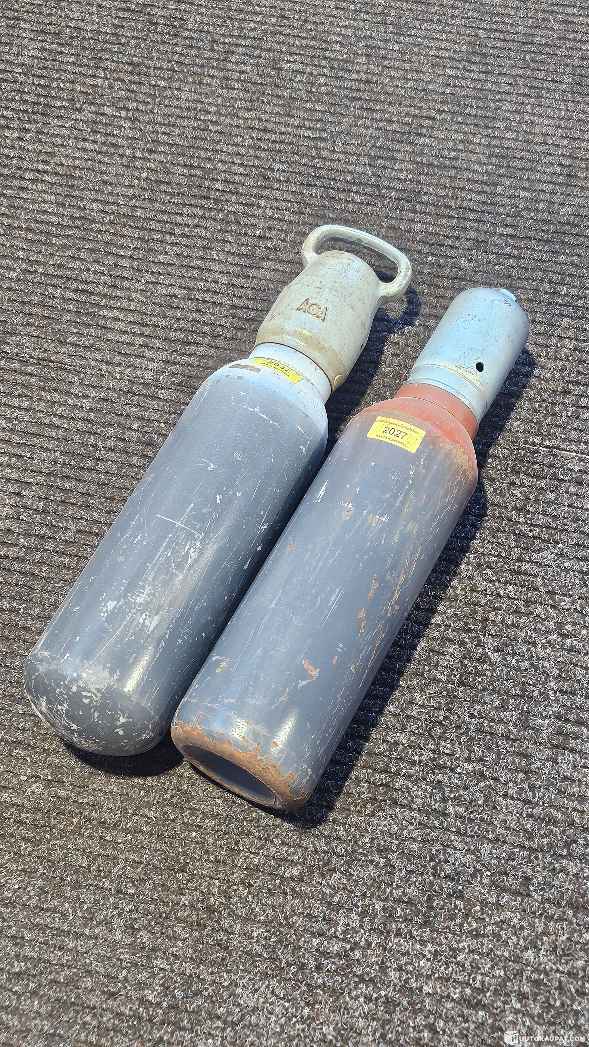 5 litran happi ja asetyleenipullot. Katsastus voimassa 2027 ja 2032 saakka. Molemmat pullot täynnä. Noudettava viikon kuluessa huutokaupan päättymisestä.