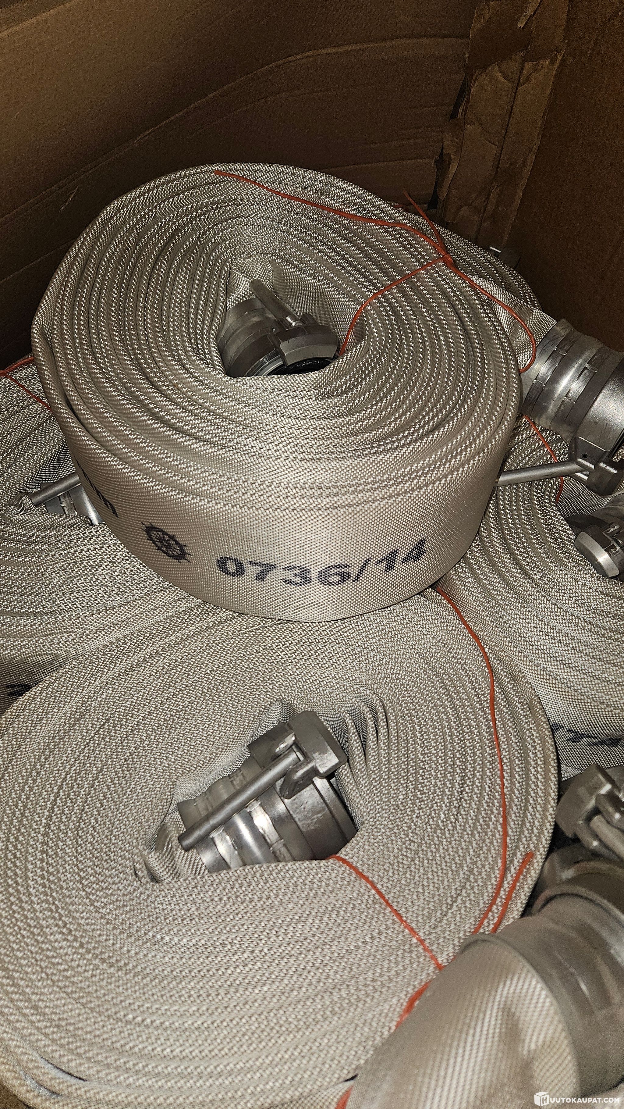 15 kieppiä käyttämätöntä Titan 2F paloletkua. Molemmissa päissä suomalaiset paloliittimet.