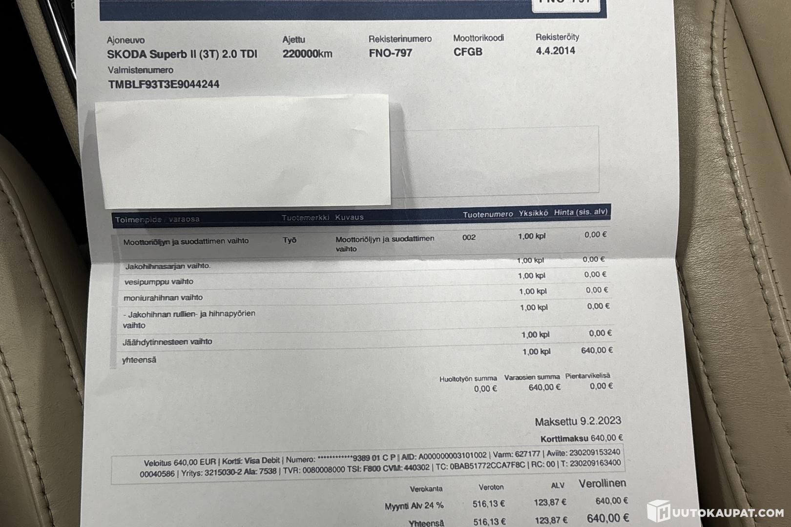 Ilmoitukseen on lisätty liitteenä auton huoltohistoria ja myös dokumentista kuva jakohihnasarjan vaihdosta.