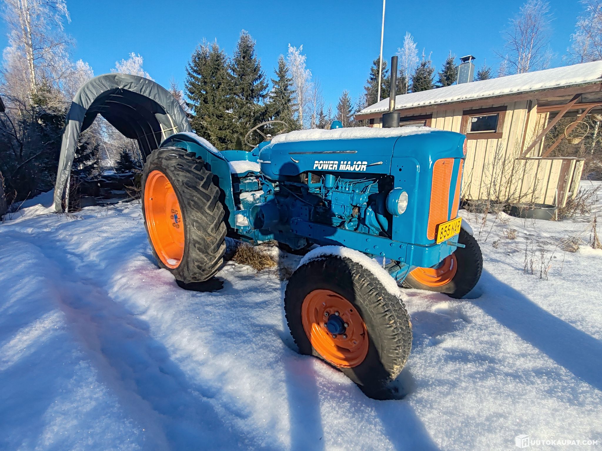 Huutokaupataan asiakkaan toimeksiantona kuvissa näkyvä ikäiseksensä erittäin siistikuntoinen Fordson Power Major vuosimallia 1958, ja jonka mittariin on kertynyt 4562 tuntia.
