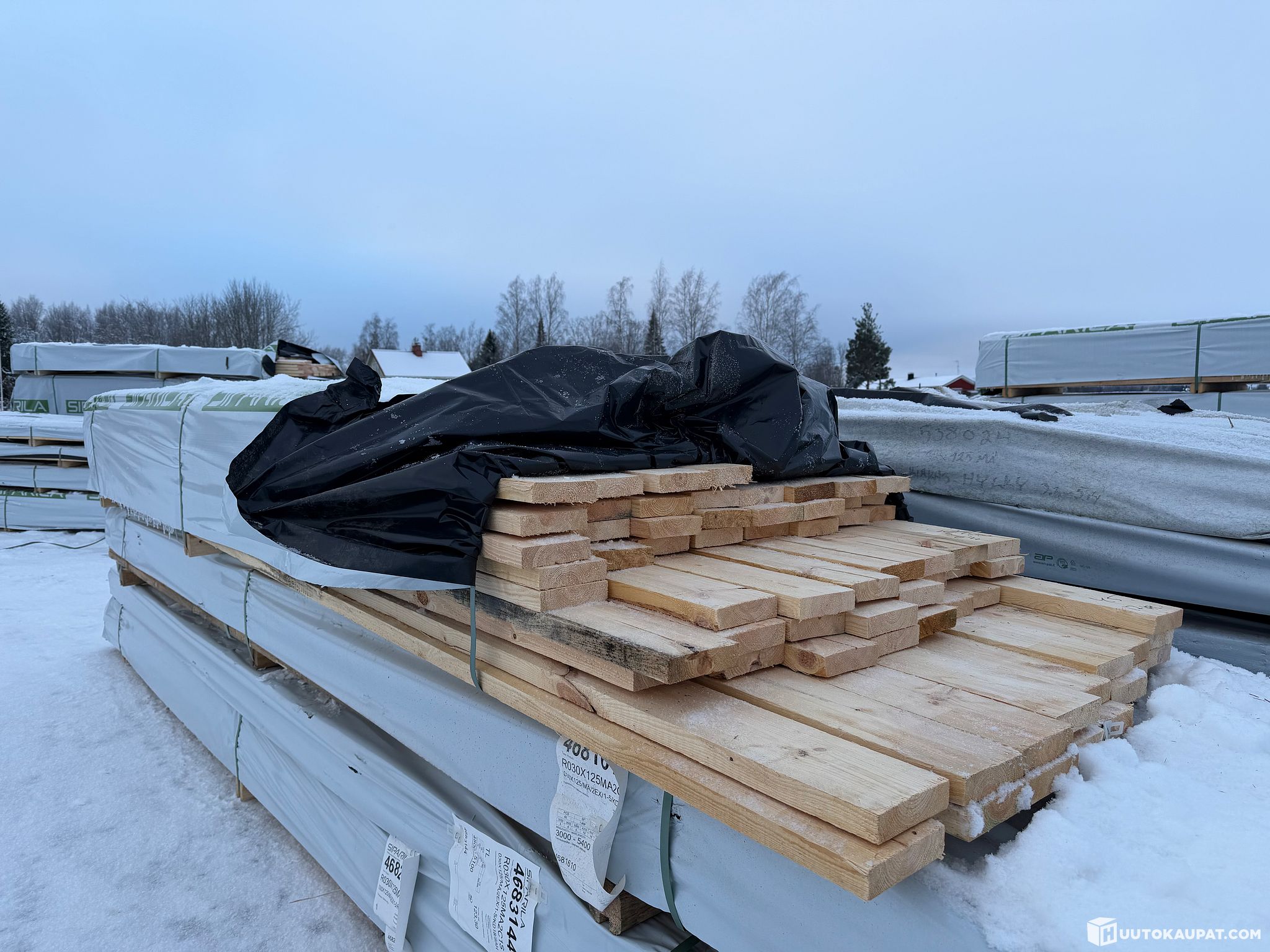 Monikäyttöistä sahatavaraa tehtaan paketissa.