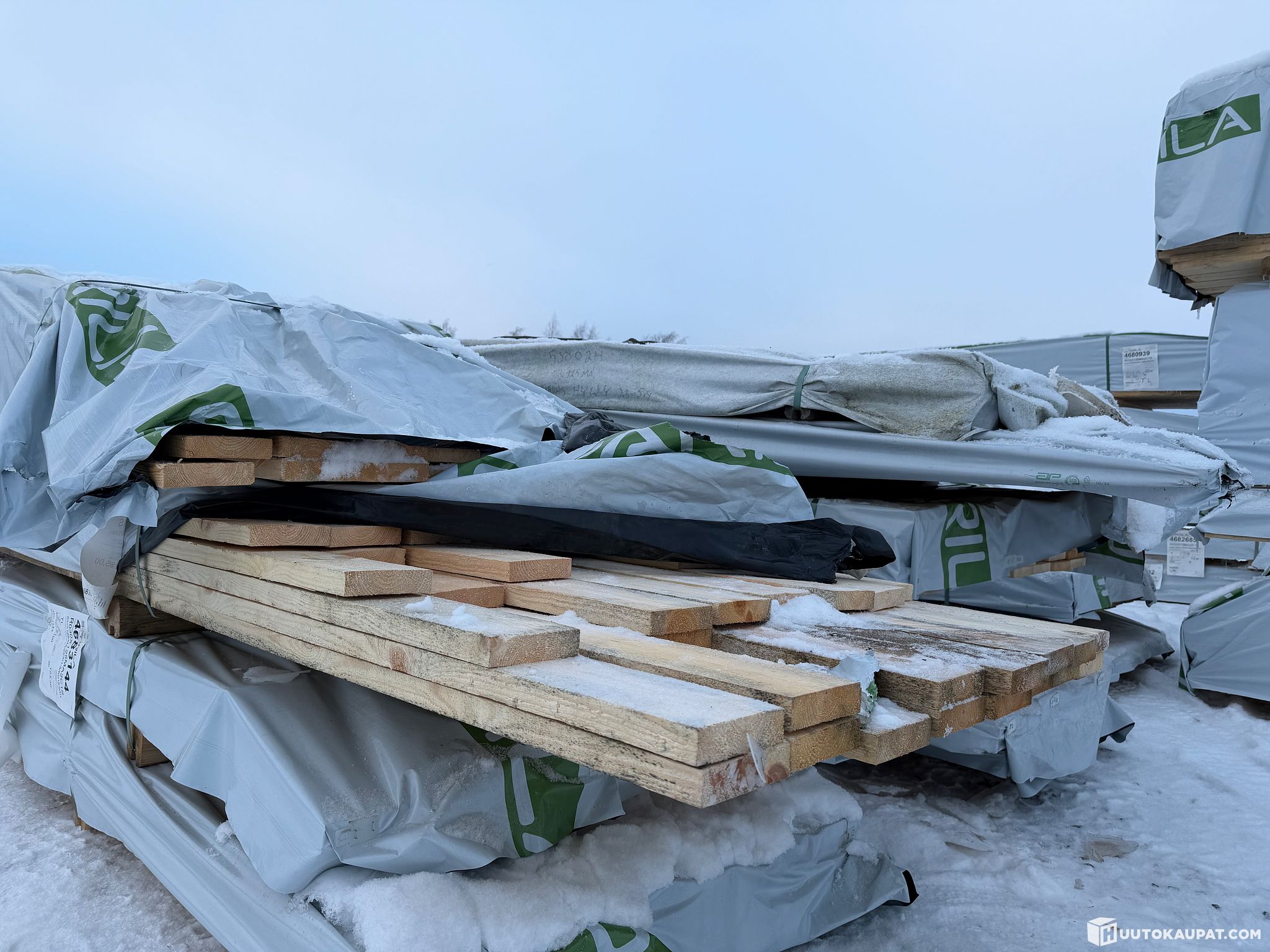 Monikäyttöistä sahatavaraa tehtaan paketissa.
