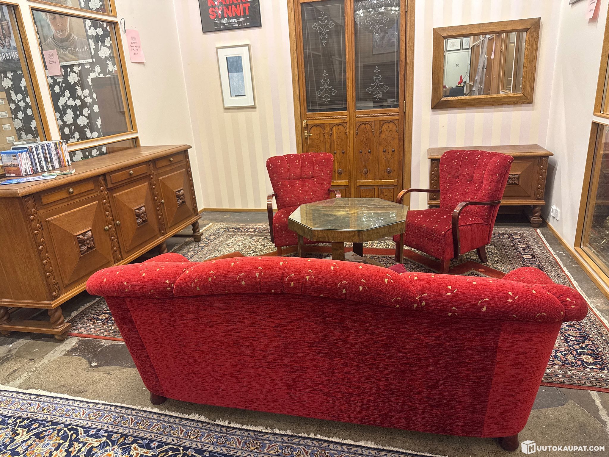 Sohvaryhmä, senkki, peili, matto