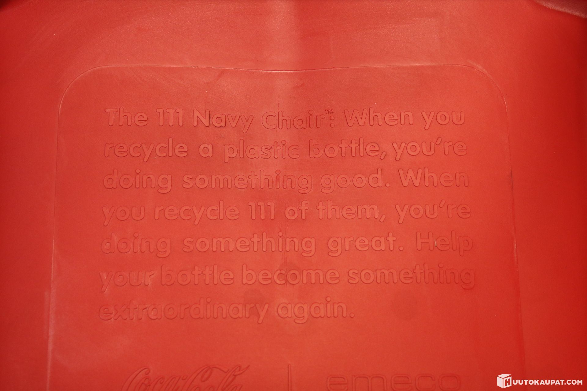Tuolit on valmistettu kierrätetystä muovista (111 muovipulloa per tuoli) yhteistyössä Coca-Colan kanssa. Kyseessä on ikoninen, moderni versio Emecón klassisesta Navy Chair -mallista.