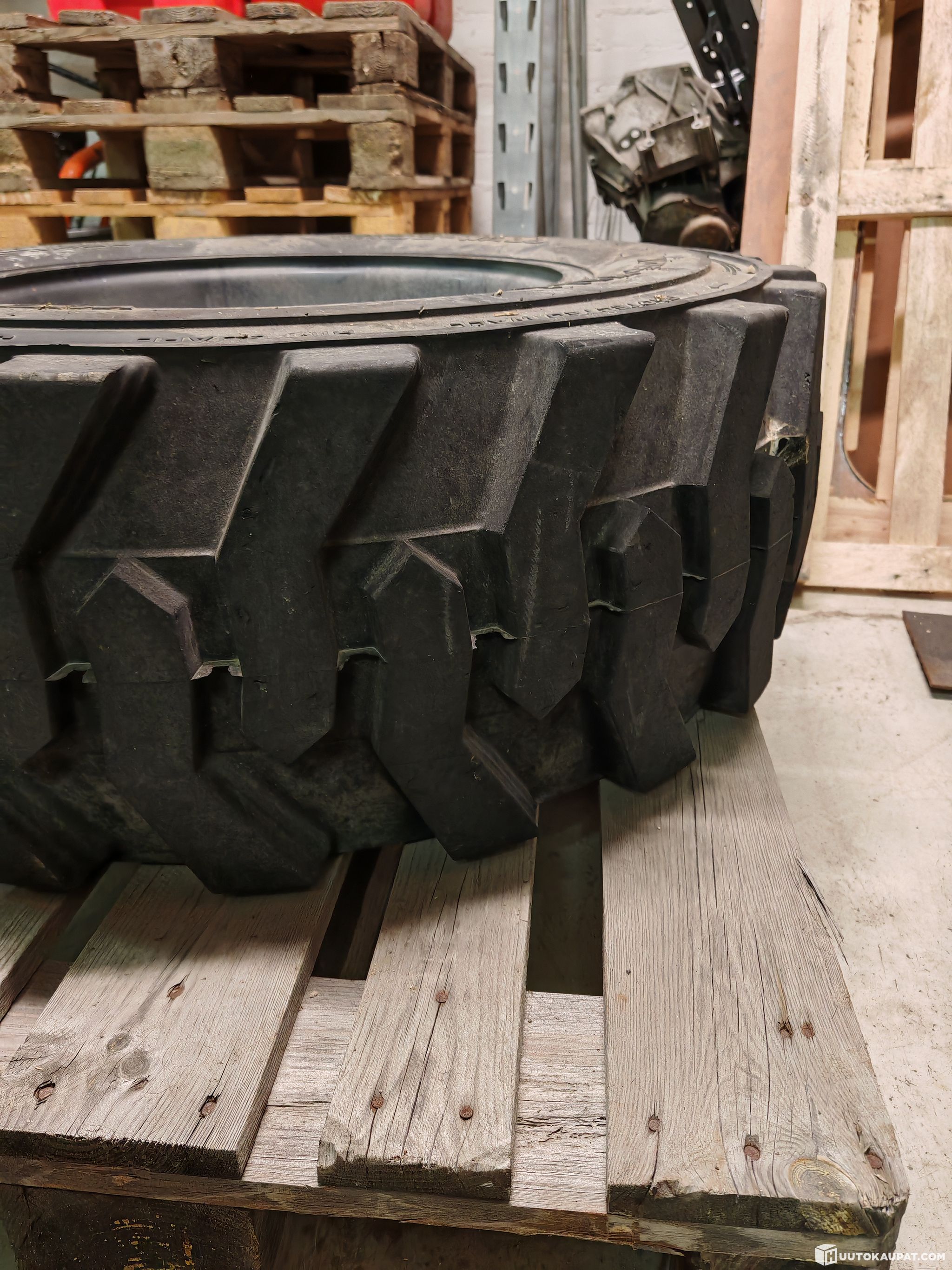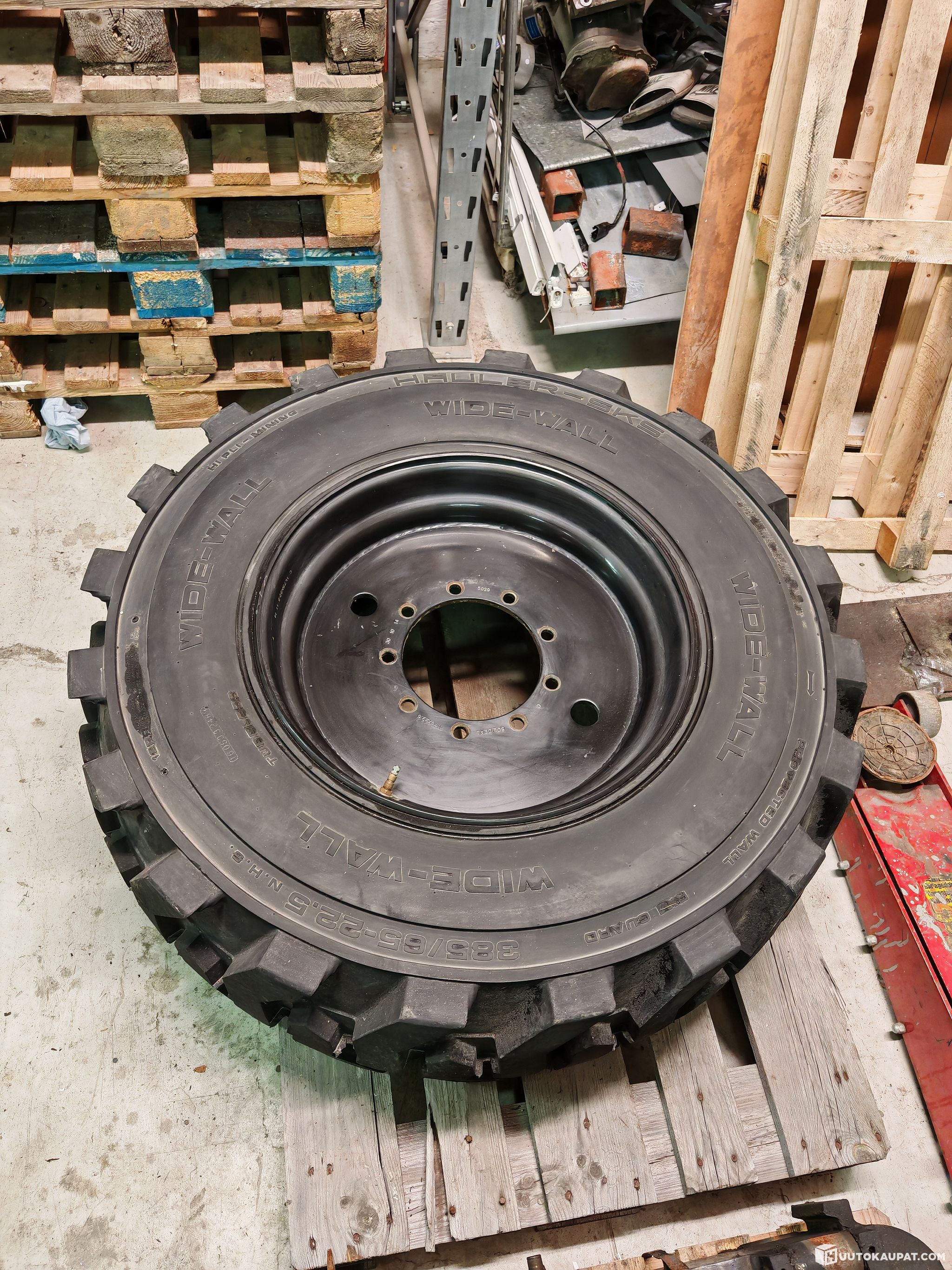 Hyväkuntoinen työkoneen rengas ja vanne 1kpl.