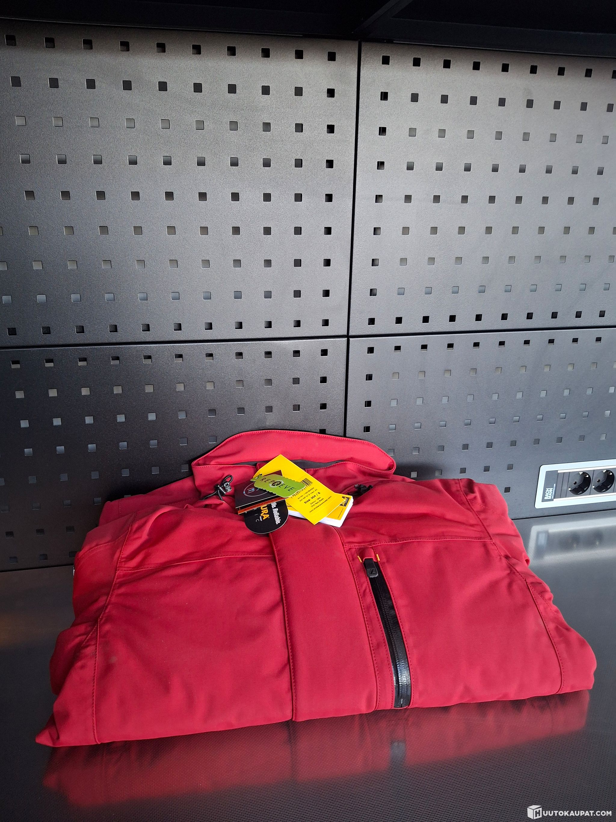 • Vedenpitävä irrotettava huppu, heijastavia yksityiskohtia ja vetoketjullinen rintatasku, jonka sisäpuolella ID-henkilökorttipidike