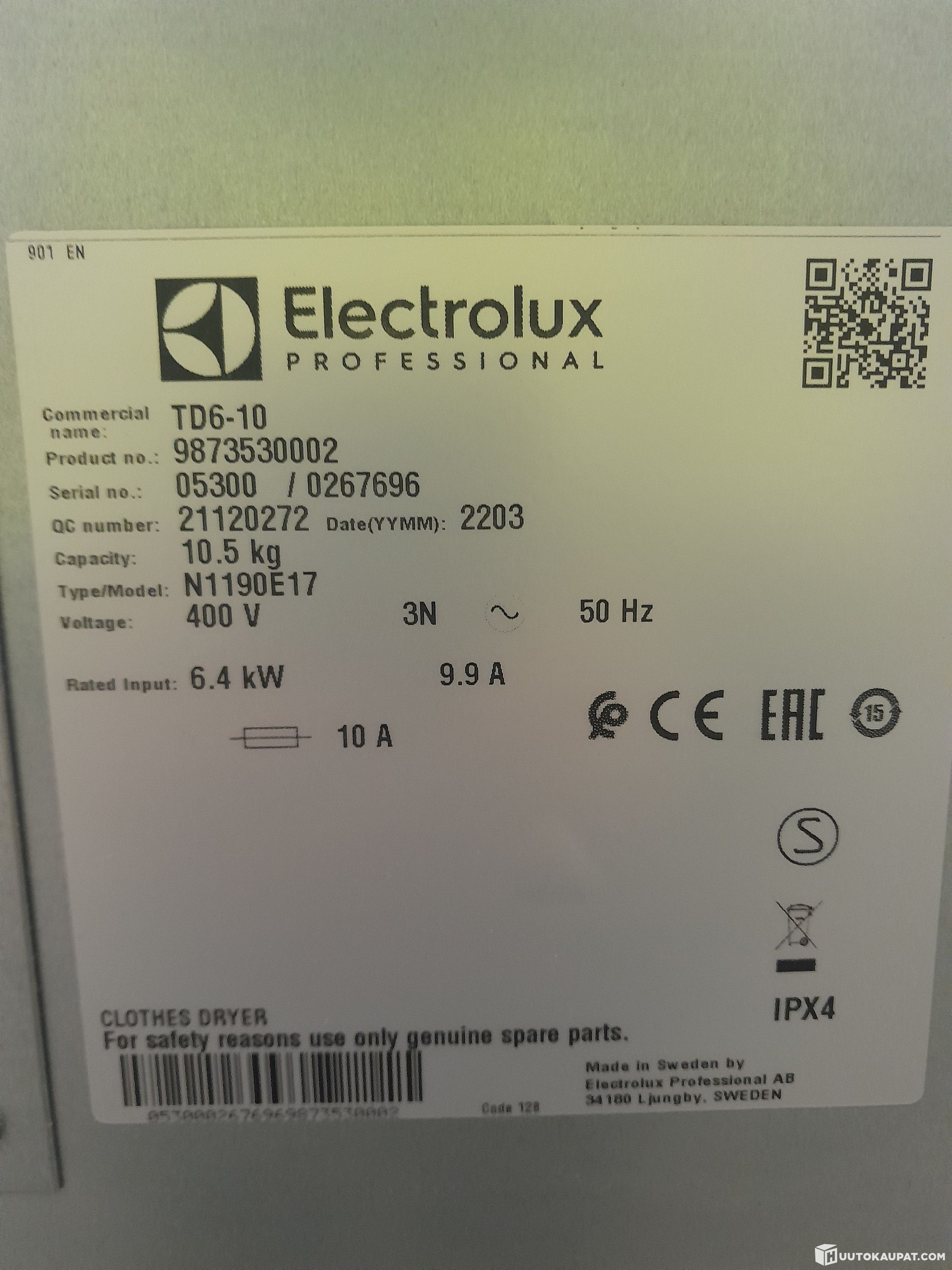 Ammattilais kuivausrumpu Elektrolux TD6-10 vm 2022
